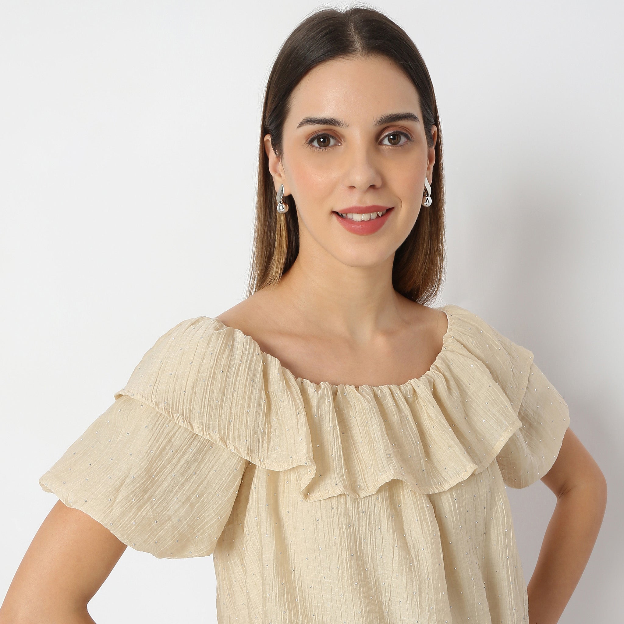 Experience the perfect blend of comfort and style with our Boat Neck Short Sleeve Betty Top. Crafted from 100% polyester, this top offers a smooth, lightweight feel that keeps you comfortable all day long. The solid pattern and woven texture add a touch of elegance, making it a versatile piece for any wardrobe.