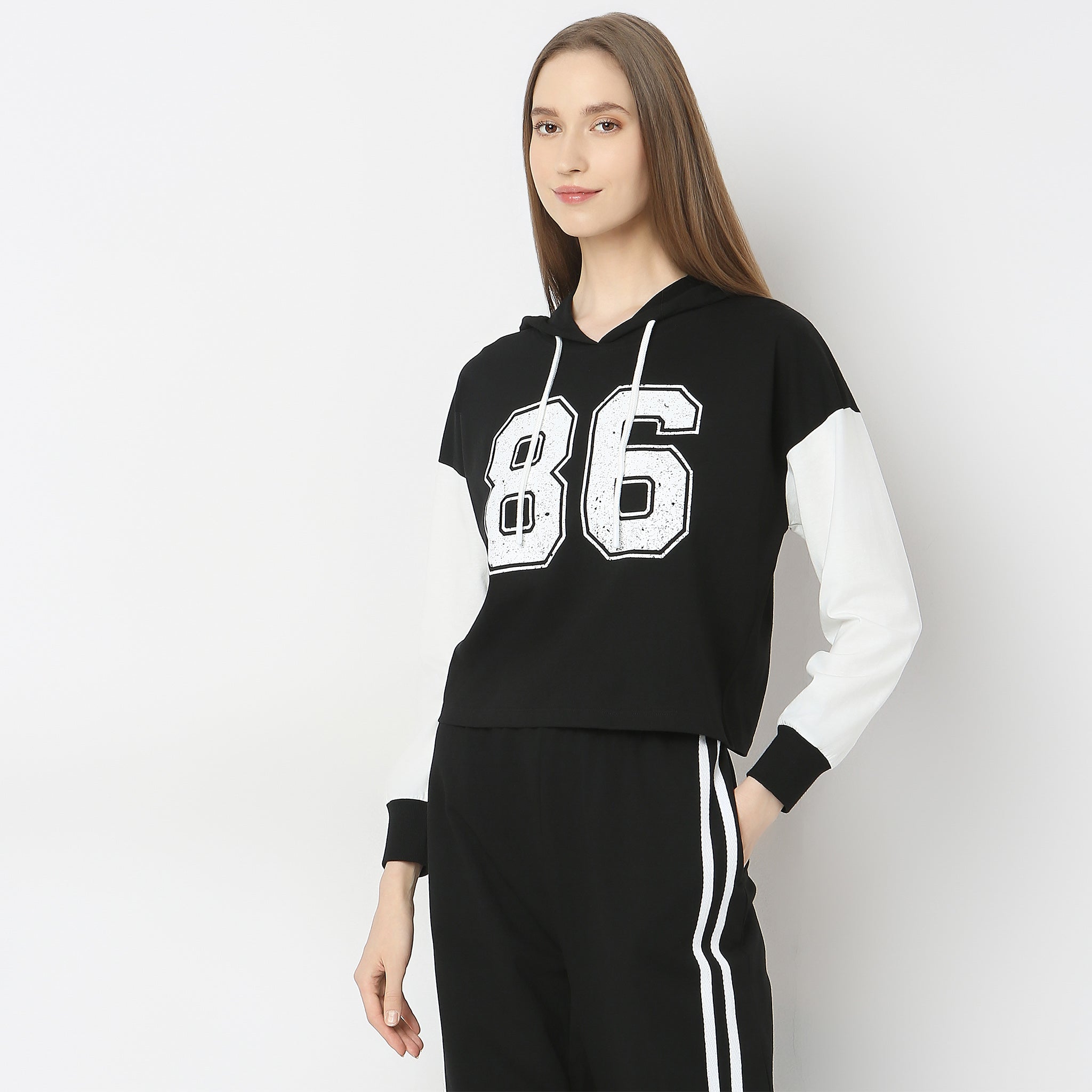 This graphic pattern t-shirt has a hoodie and full sleeve. Made from cotton, it is soft and comfortable to wear.