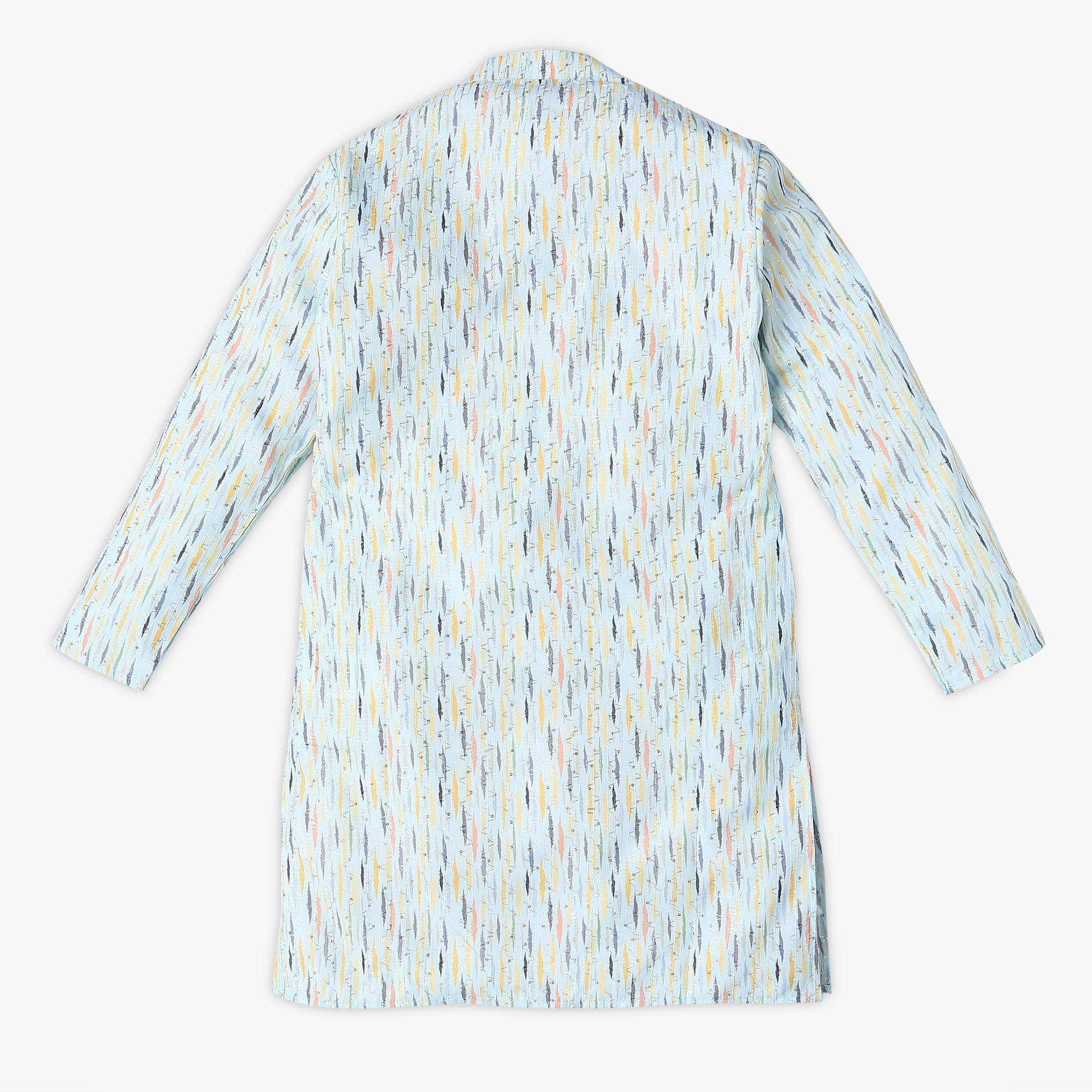 This kurta sets has a mandarin collar and full sleeve. Made from polyester, your kid's feel comfortable wearing a product.