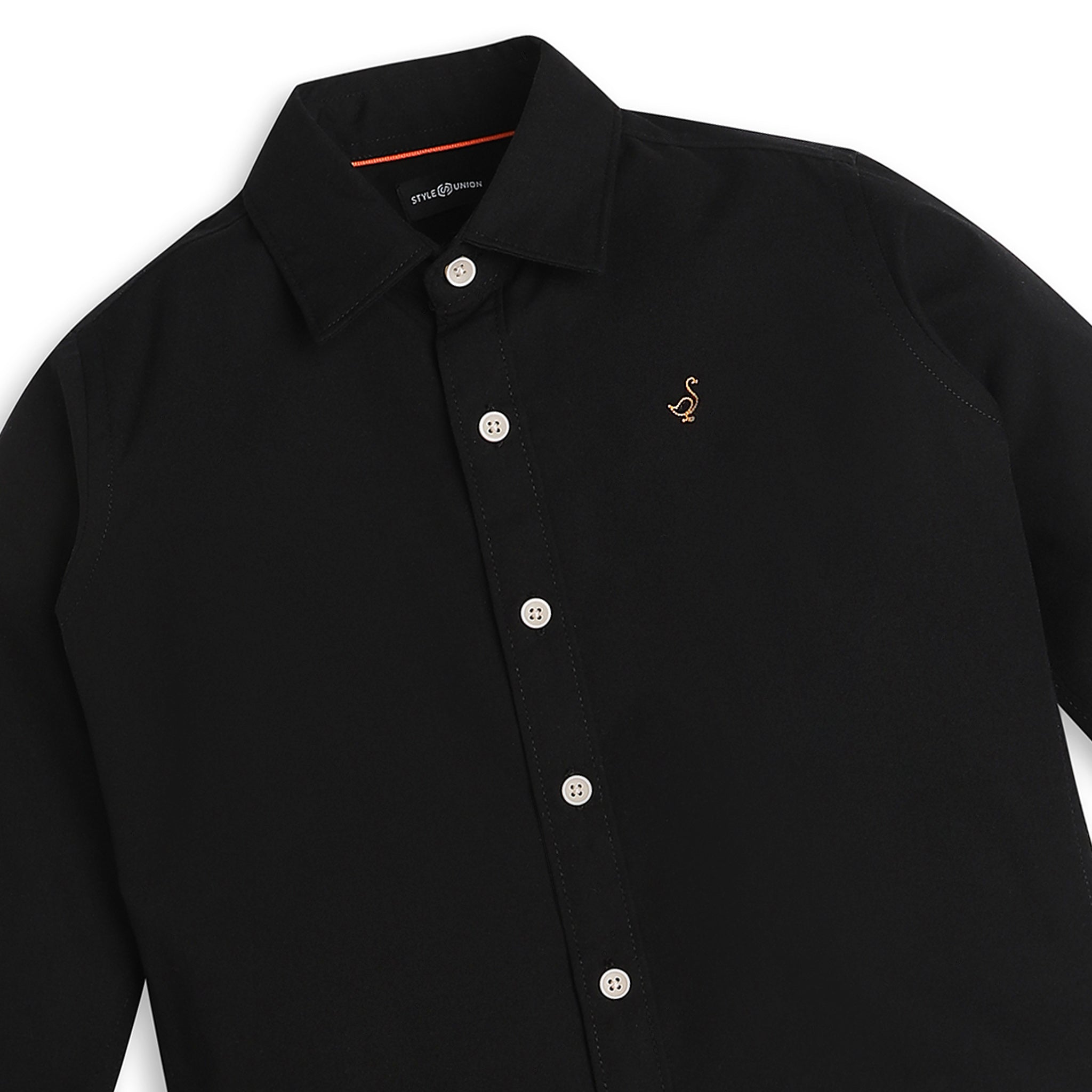 These solid pattern shirt has shirt collar and full sleeve. Made from polyester cotton, your kid's feel comfortable wearing the product.