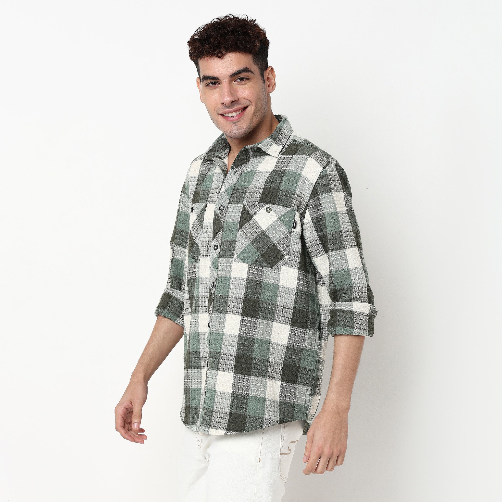 Experience the perfect blend of style and comfort with our Checkered Cotton Fabric Shirt. Crafted from 100% cotton, this shirt offers a soft touch against the skin, ensuring all-day comfort. The woven checkered pattern adds a timeless appeal, making it a versatile addition to your wardrobe. Whether you're heading to the office or a casual outing, this shirt adapts effortlessly to any setting.
