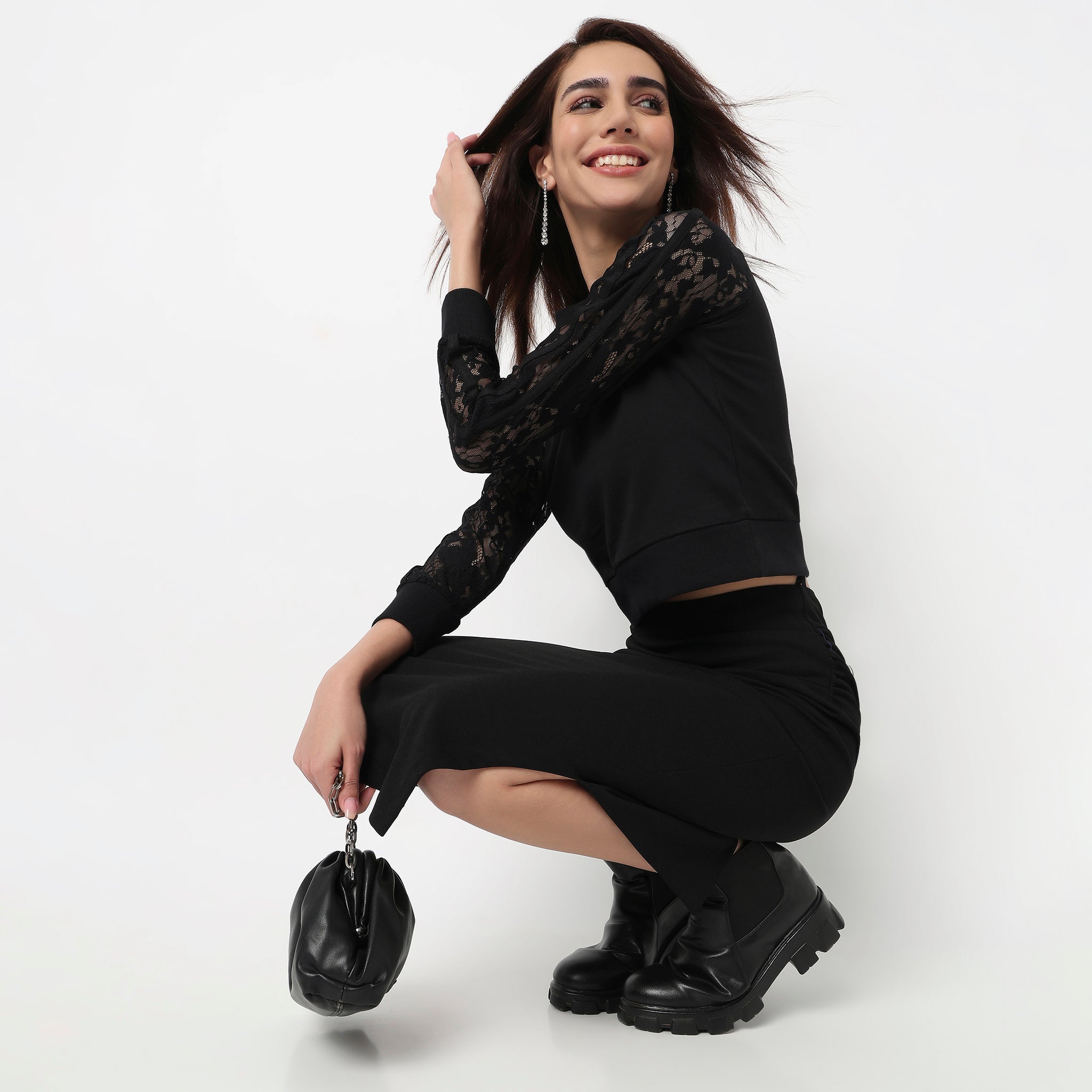 Elevate your everyday style with our Cotton Lace Sleeve T-Shirt, designed specifically for women. This versatile piece combines comfort and elegance, making it a perfect addition to any wardrobe.