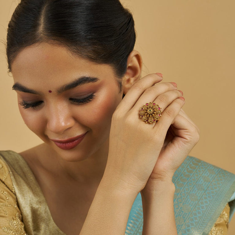 Flower Motif Antique Finger Ring
