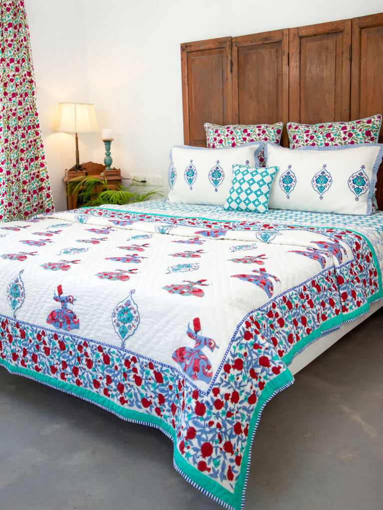 Unicorn Block Printed Cotton Top & Pyjama Set