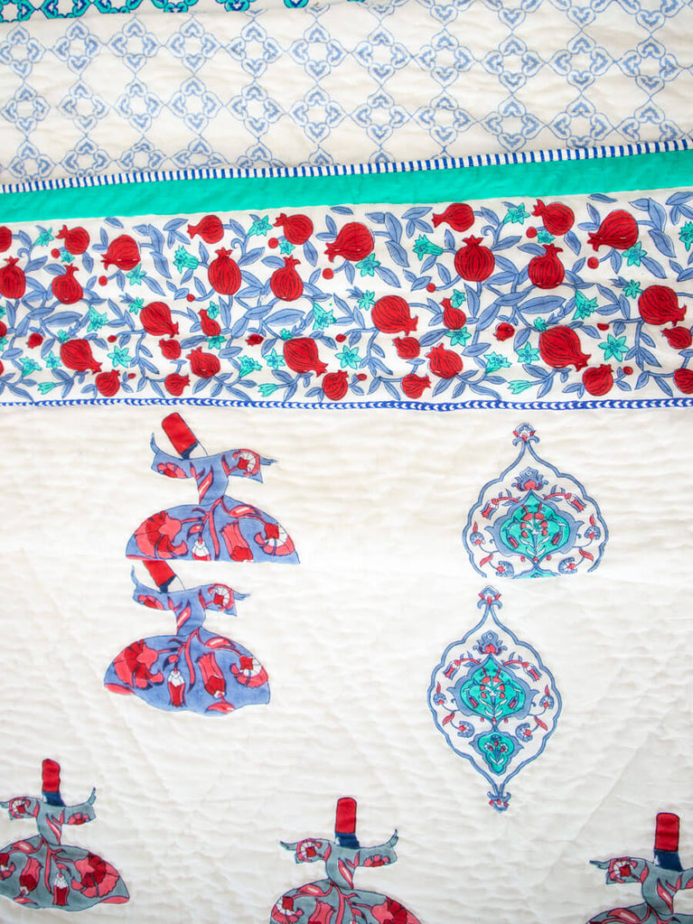 Travelers Palm Block Printed Cotton Dhurrie Rug