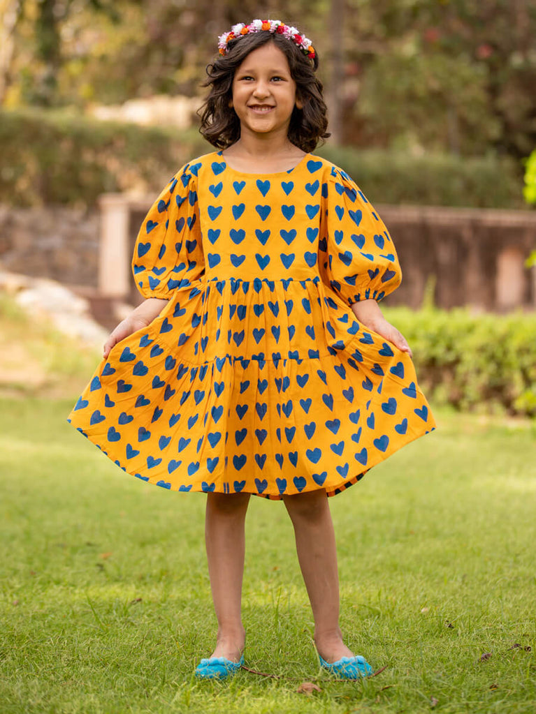 Sweetheart Organic Cotton Block Printed Tiered Dress