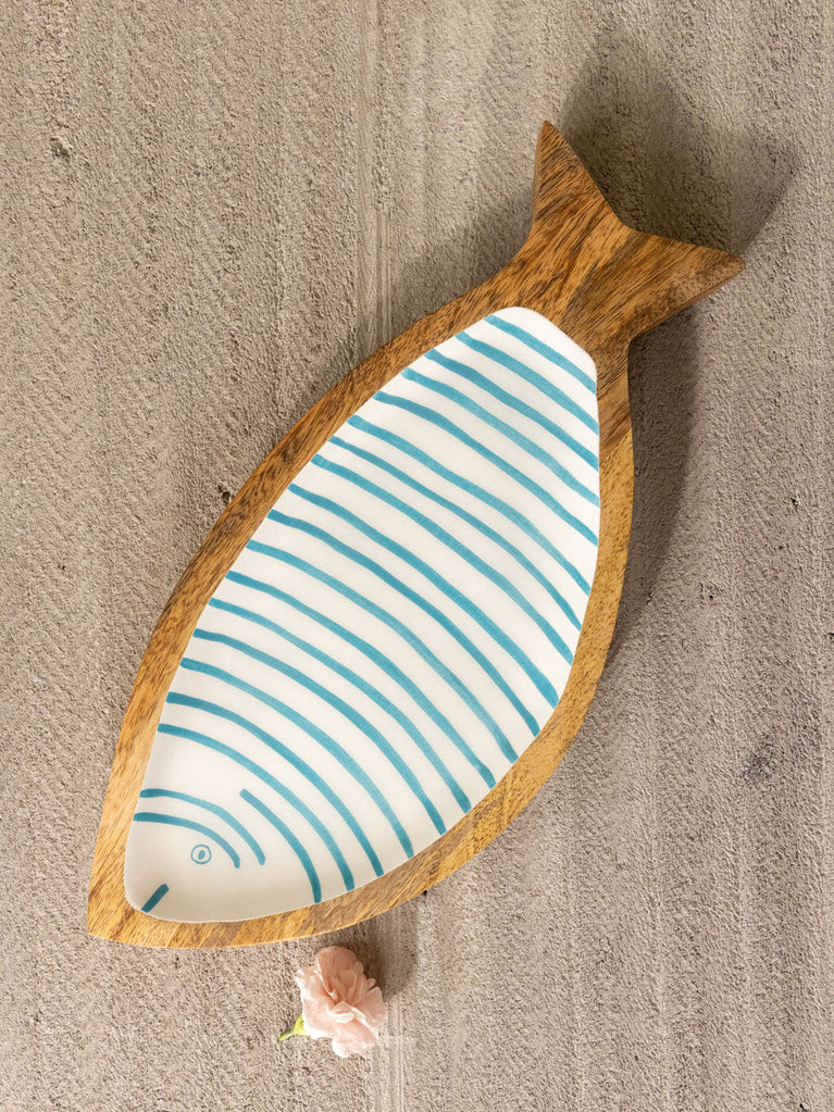 Turquoise Fin Hand Carved Wooden Platter - Small