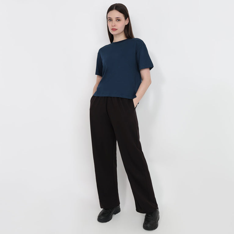 Discover the perfect blend of comfort and style with our Relaxed Fit Solid T-Shirt. Crafted from a soft cotton-polyester blend, this versatile piece is designed for women who value both fashion and ease.