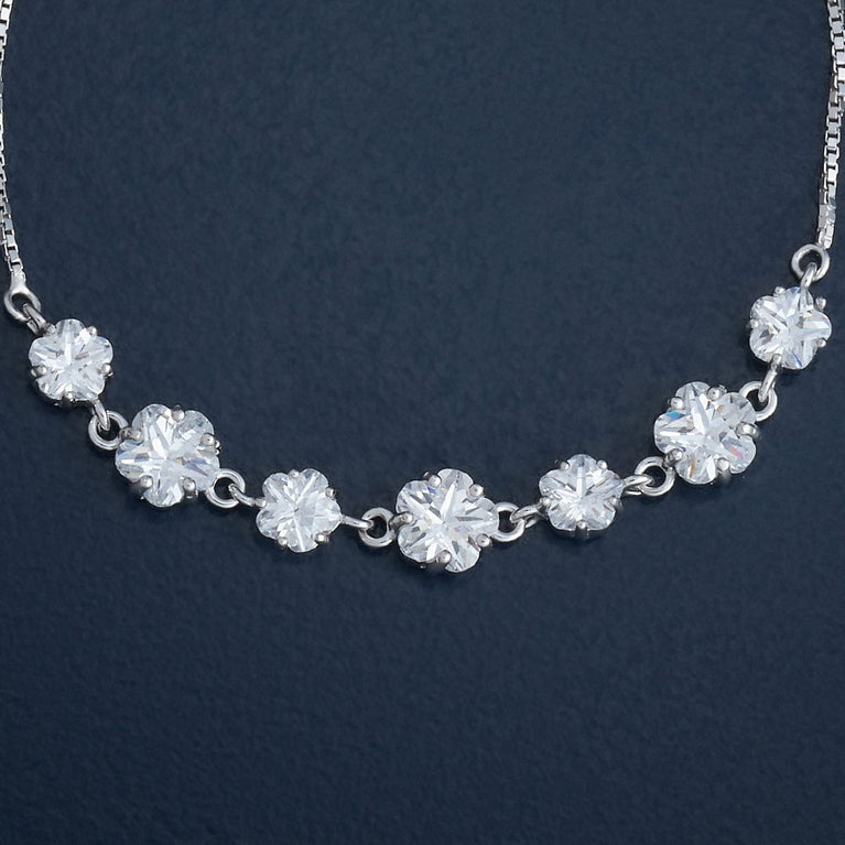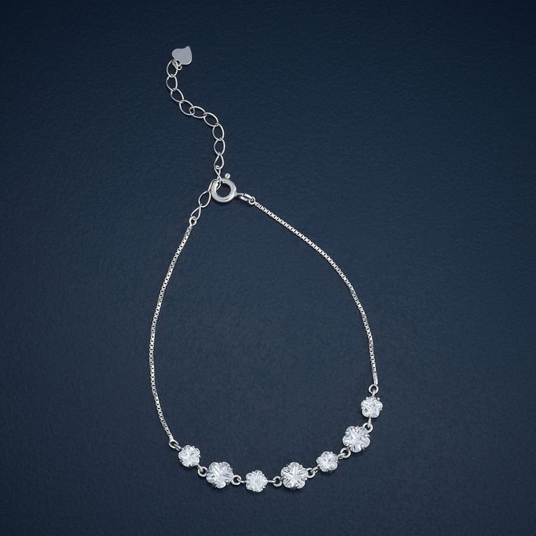Kushal's Fashion Jewellery 92.5 Pure Silver Flower Motif BraceletChoose our star-themed bracelet that comes with an adjustable chain. The zircon stones have added an extra layer of beauty to the product. We use only quality 92.5 silver for the sturdy look. You have no reason to worry when you purchase from us. The polish options that you can get are gold and rose-gold can be exquisite.