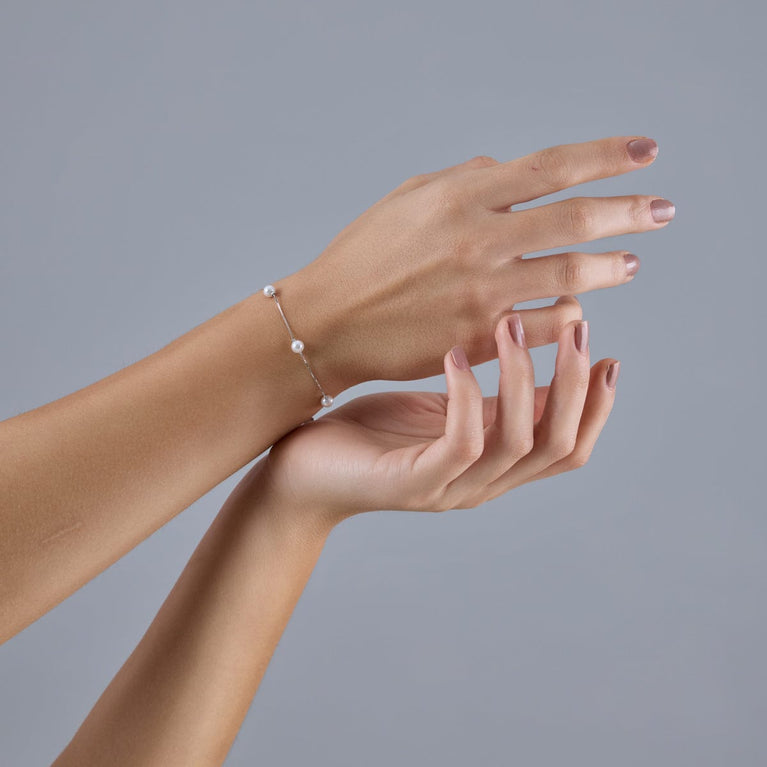 Kushal's Fashion Jewellery 92.5 Pure Silver Heart Pattern BraceletOur three-layered bracelet is a unique jewellery that is trending nowadays. The 92.5 silver offers a sturdy product at the end. The zircon stones have added a unique charm to the bracelet. The adjustable chain makes it possible for you to wear it comfortably. Choose your polish option from gold and rose-gold and rose-gold.