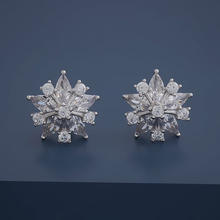 Kushal's Fashion Jewellery 92.5 Pure Silver EarringAdorned with zircon stones, these ultra-modern stud earrings are exceptional in quality. We have made these earrings with intricate designs. We offer three different polish options such as rhodium, rose-gold and gold. The earrings have a push-back design for your comfortable wear. With 92.5 silver as the base material, don’t worry about quality.