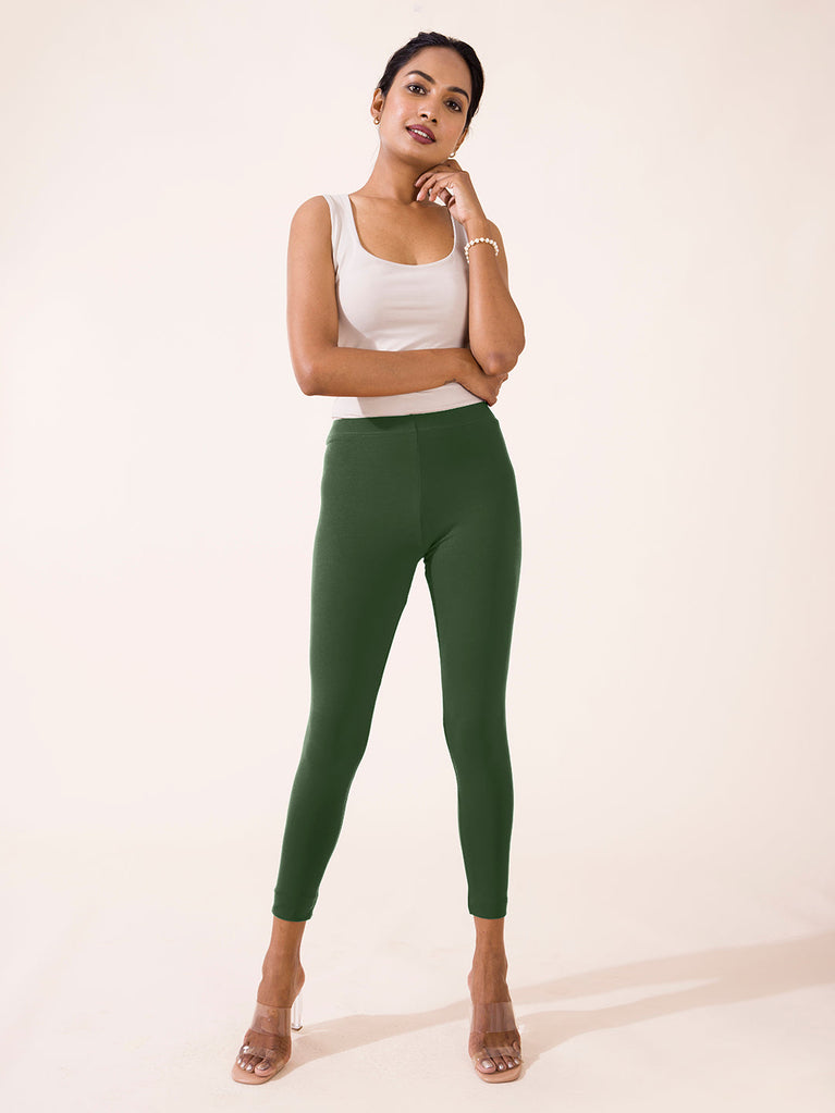 Dusty Green Cotton Stretch Ankle Length Leggings