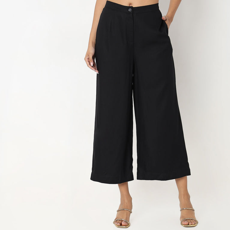 Ankle Length Flare Fit Solid Culottes