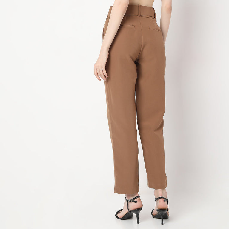 These solid pattern regular fit trousers has ankle length, high rise waist. Made from polyester, it is soft and comfortable to wear.