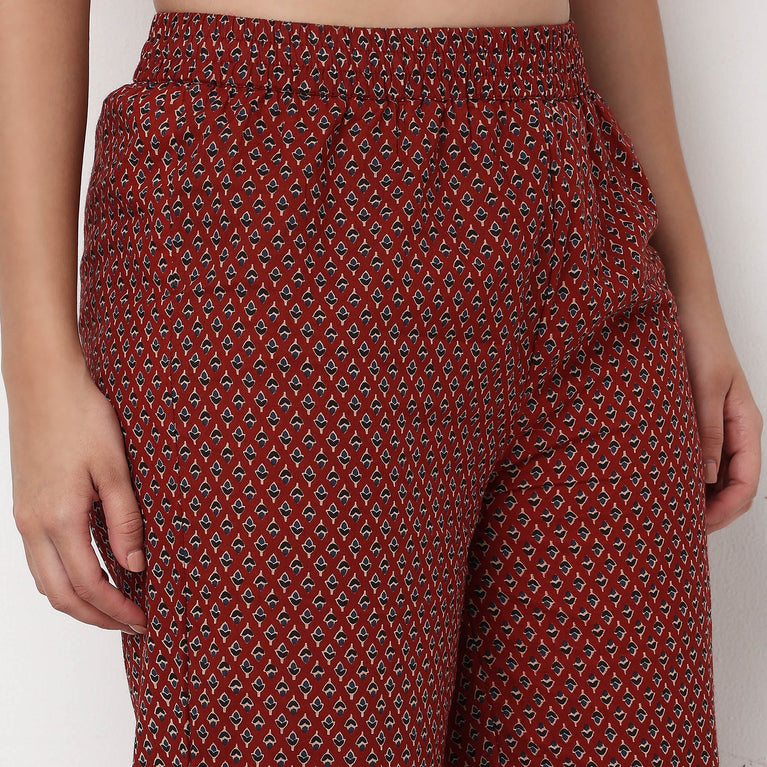Spruce up a look or spend the day comfortably in the Cherry Cotton Salwar. It has a drawstring pull-up closure, front pleats with a regular fit. Can pair it with a tunic or any kurti for a fun everyday look.