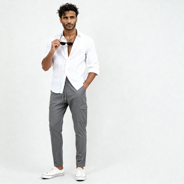 Elevate your casual look with our Cotton Ankle Length Cargos, designed for men who value both comfort and style. Crafted from soft, woven cotton, these cargos are perfect for versatile wear.