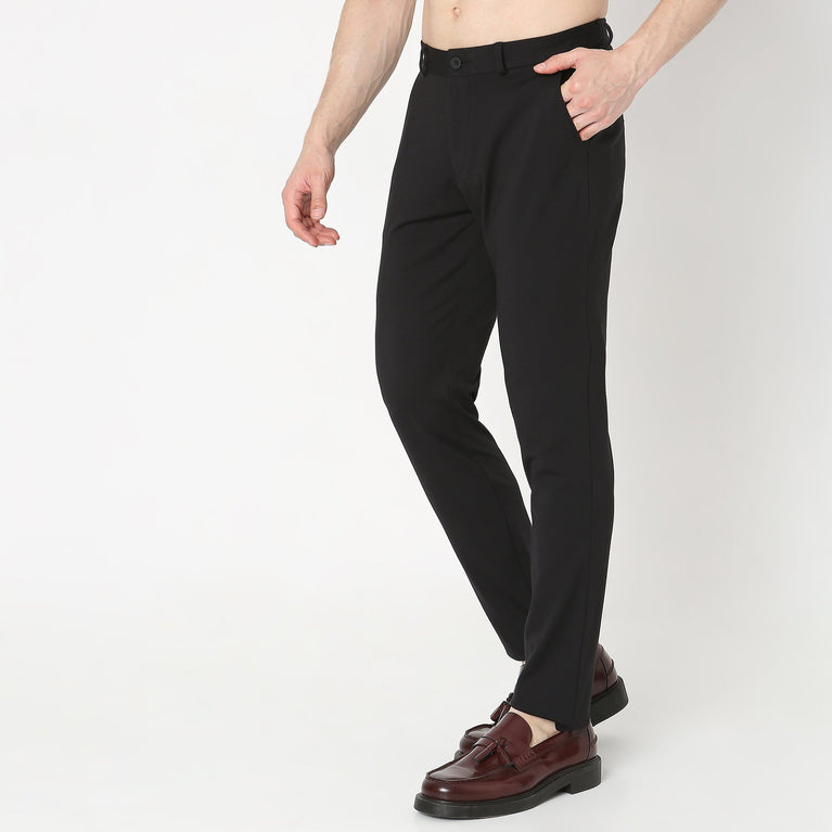 These Solid pattern Regular Fit Chinos has Ankle Length, Mid Rise waist. Made from Polyester Viscose Spandex, it is soft and comfortable to wear.
