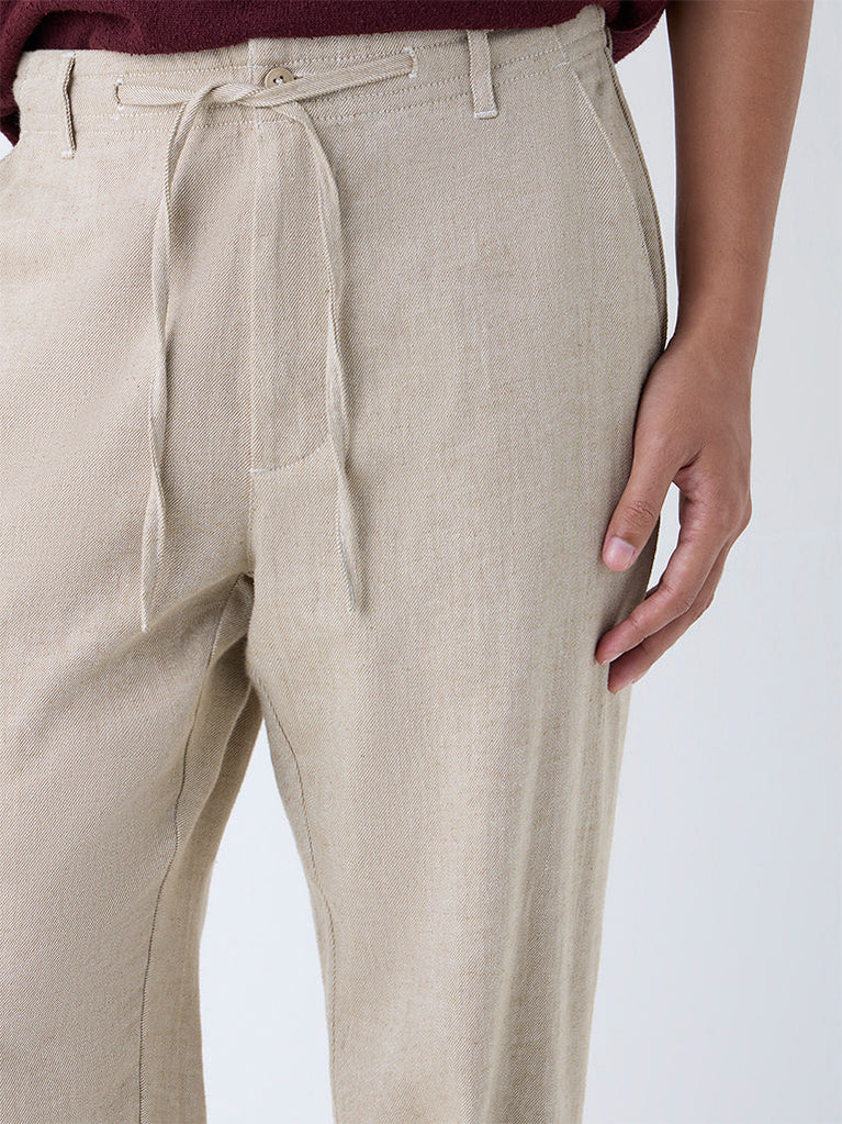 ETA Beige Striped Relaxed-Fit Mid-Rise Cotton Chinos