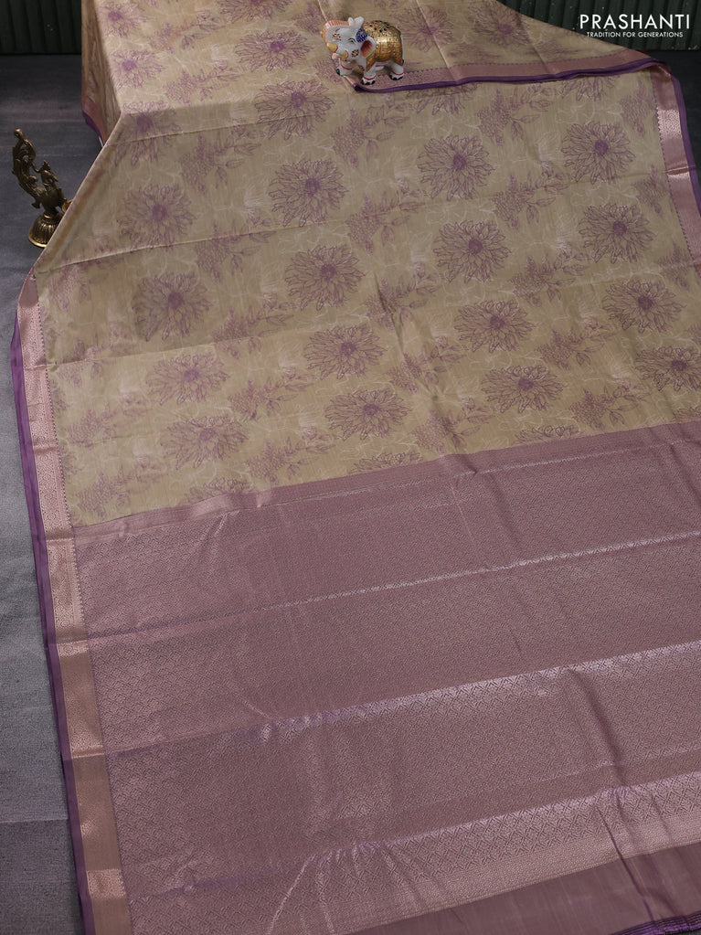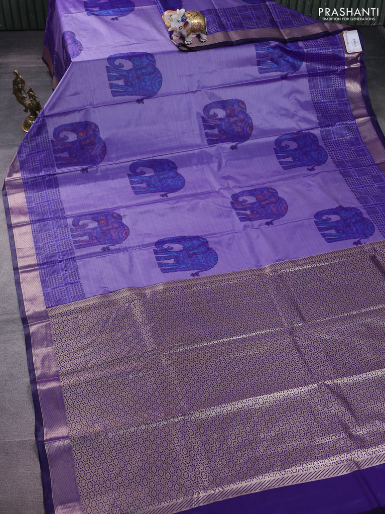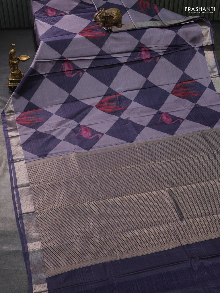 Bangalori semi silk saree lavender and violet shade with allover elephant ikat butta weaves and zari woven border