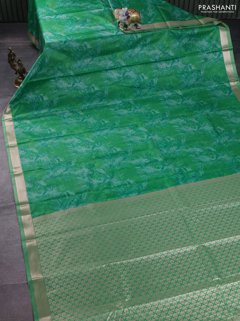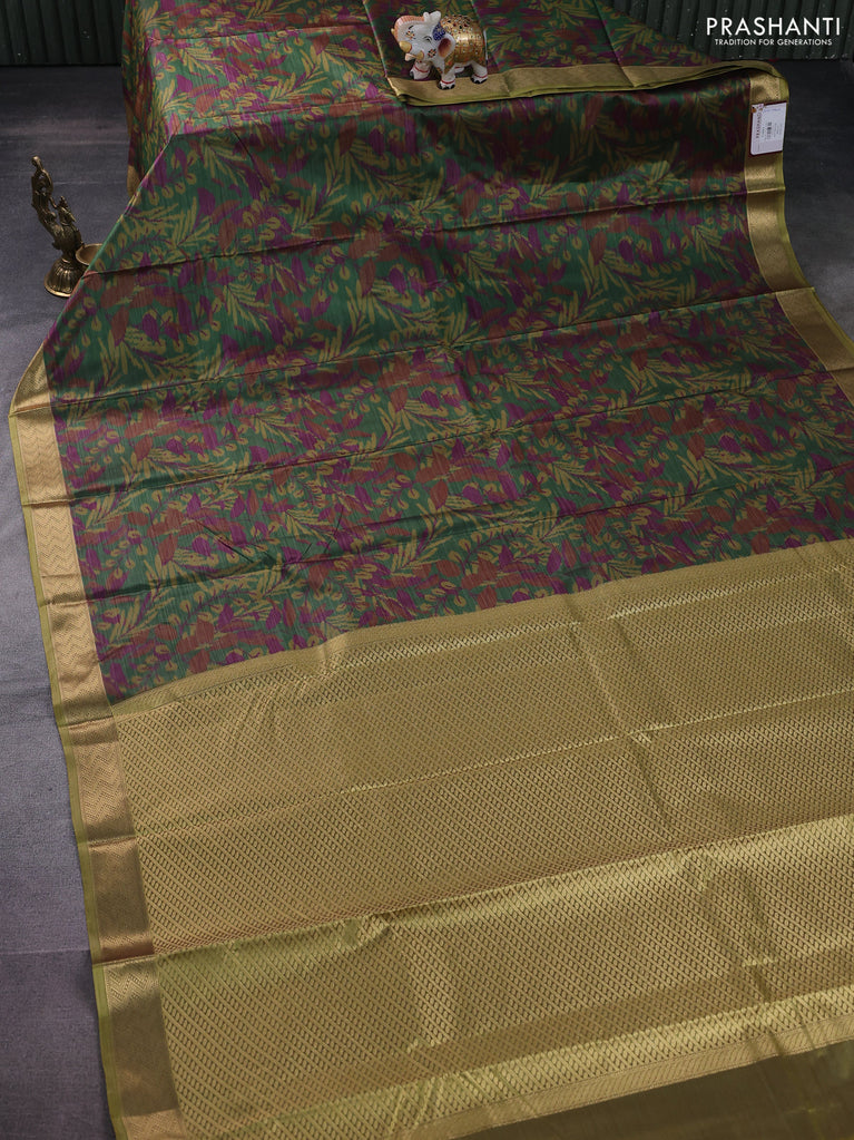 Bangalori semi silk saree green with allover elephant butta ikat weaves and zari woven border
