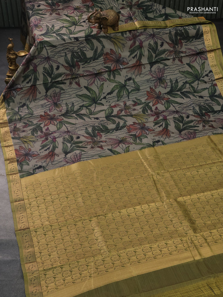 Bangalori semi silk saree grey and mehendi green with allover ikat weaves and zari woven border