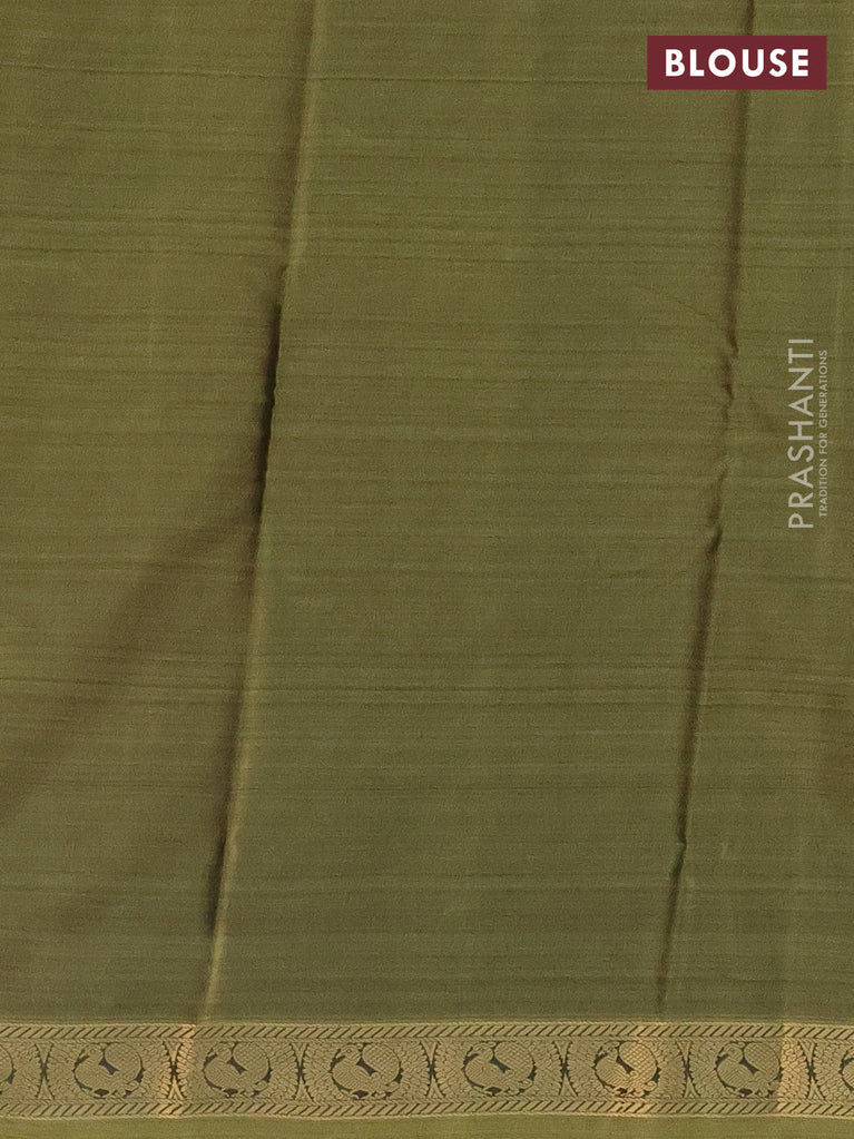 Bangalori semi silk saree greyish green and dark sap green with allover ikat weaves and zari woven border