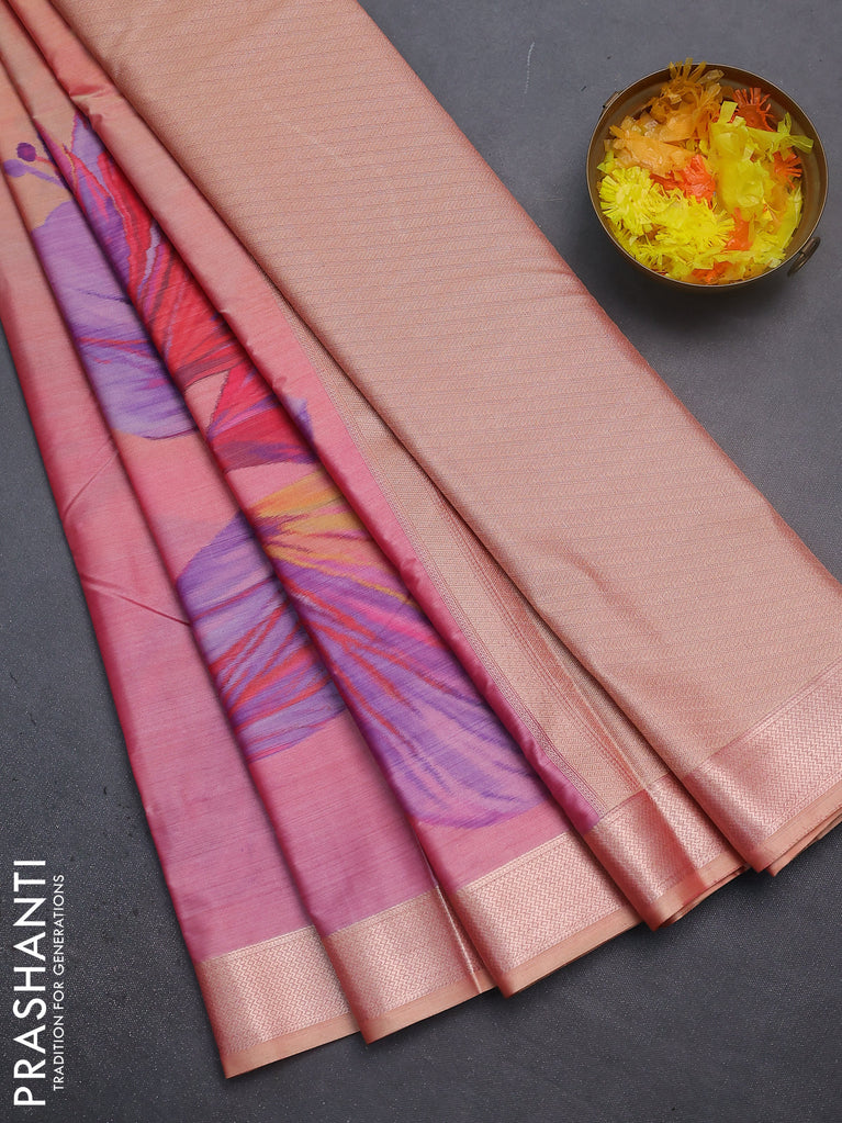 Bangalori semi silk saree lavender shade and pastel pink with allover ikat weaves and zari woven border