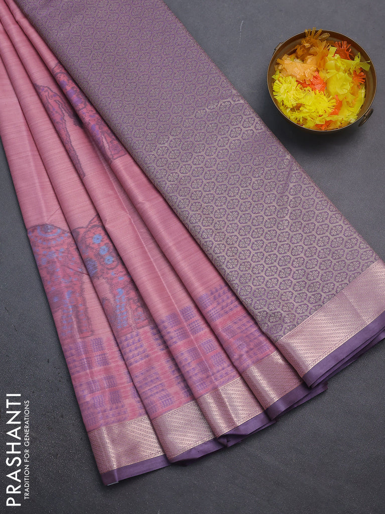 Bangalori semi silk saree pastel lavender with elephant butta ikat weaves and zari woven border