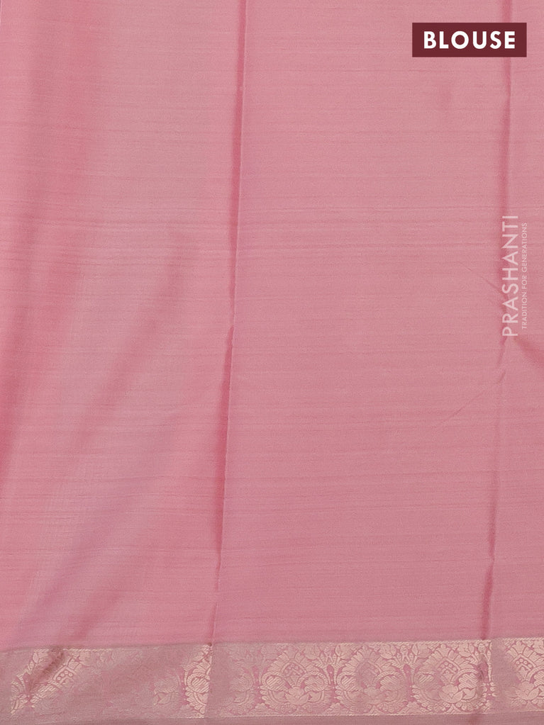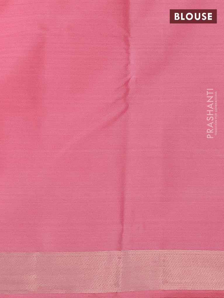 Bangalori semi silk saree pastel pink and grey with elephant butta ikat weaves and zari woven border