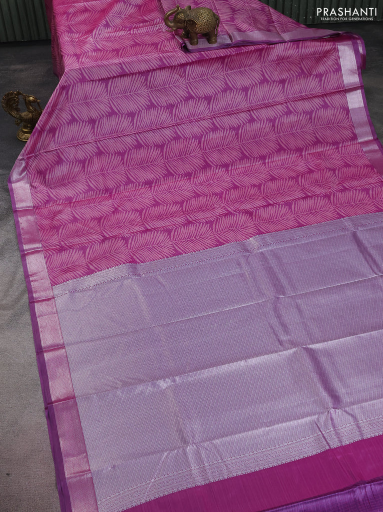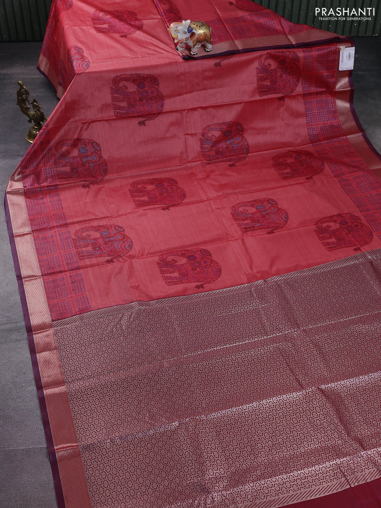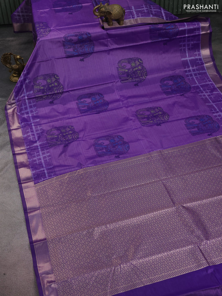 Bangalori semi silk saree purple with allover elephant ikat butta weaves and zari woven border