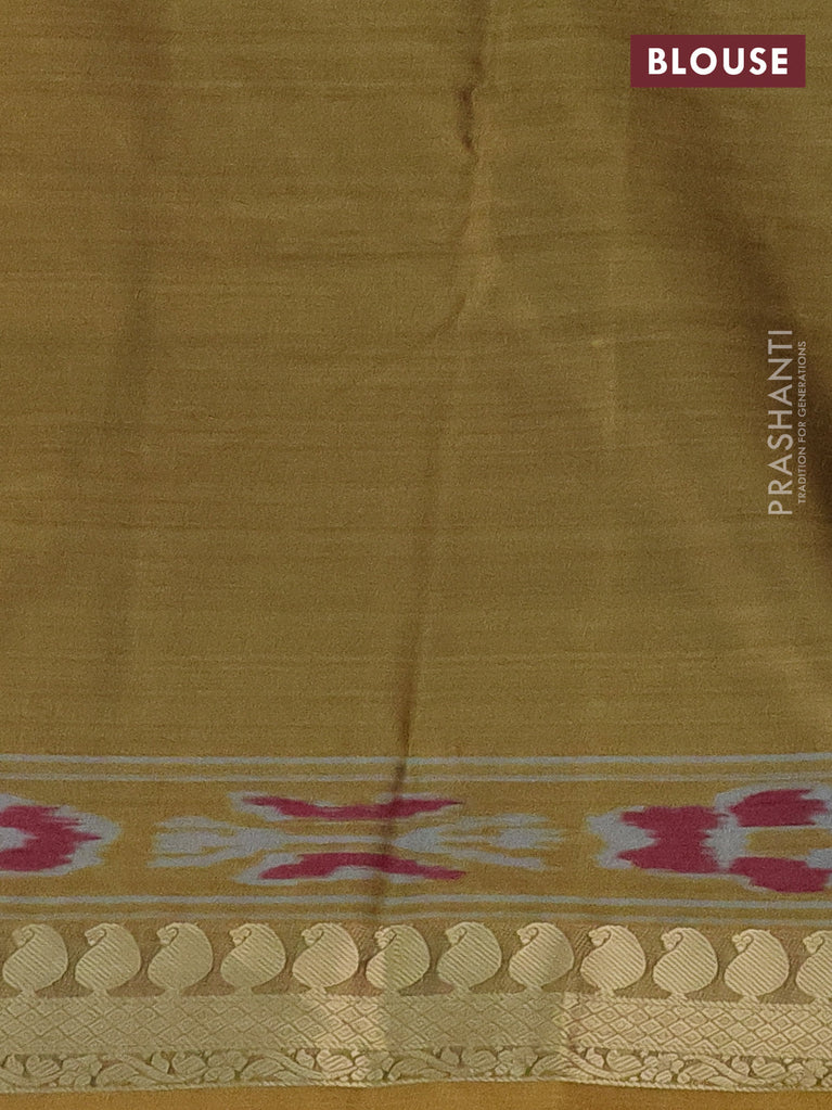 Bangalori semi silk saree sandal and green with allover ikat weaves and zari woven border