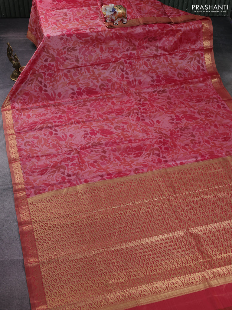 Bangalori semi silk saree pink with floral design ikat weaves and zari woven border