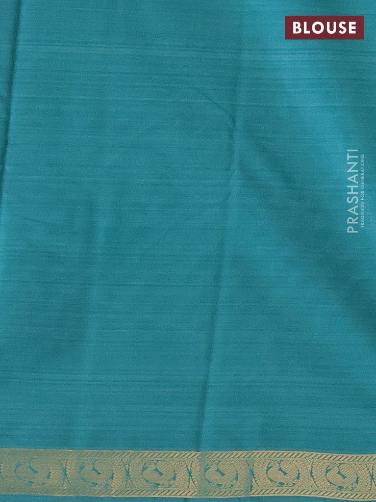 Bangalori semi silk saree teal green with allover elephant butta ikat weaves and zari woven border