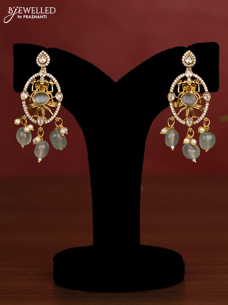 Beaded double layer mint green necklace tiruapti balaji pendant with cz stones and pearl & beads hanging in victorian finish
