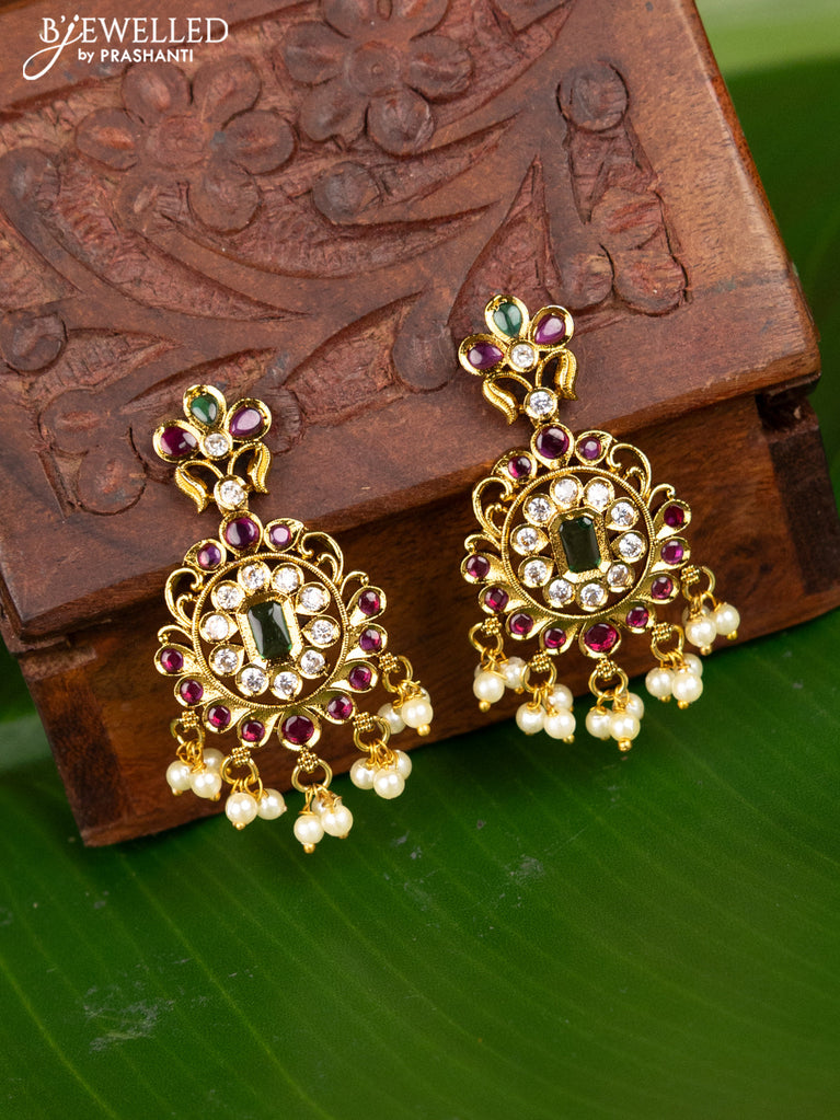 Antique earring floral design with kemp & cz stones and pearl hangings