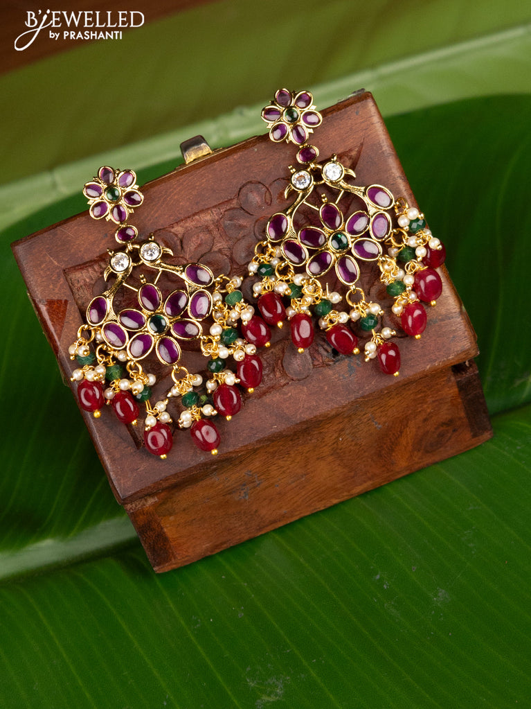 Antique earing peacock design with kemp & cz stones and pearl hangings