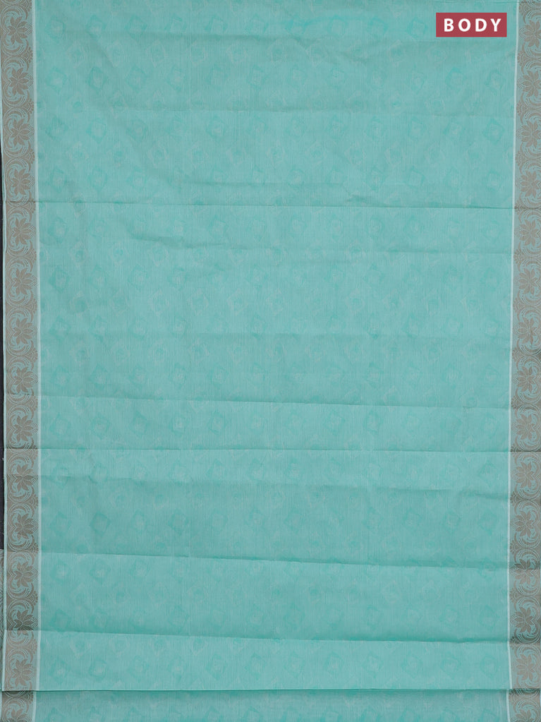 Coimbatore cotton saree light green and teal blue with allover self emboss and thread woven border