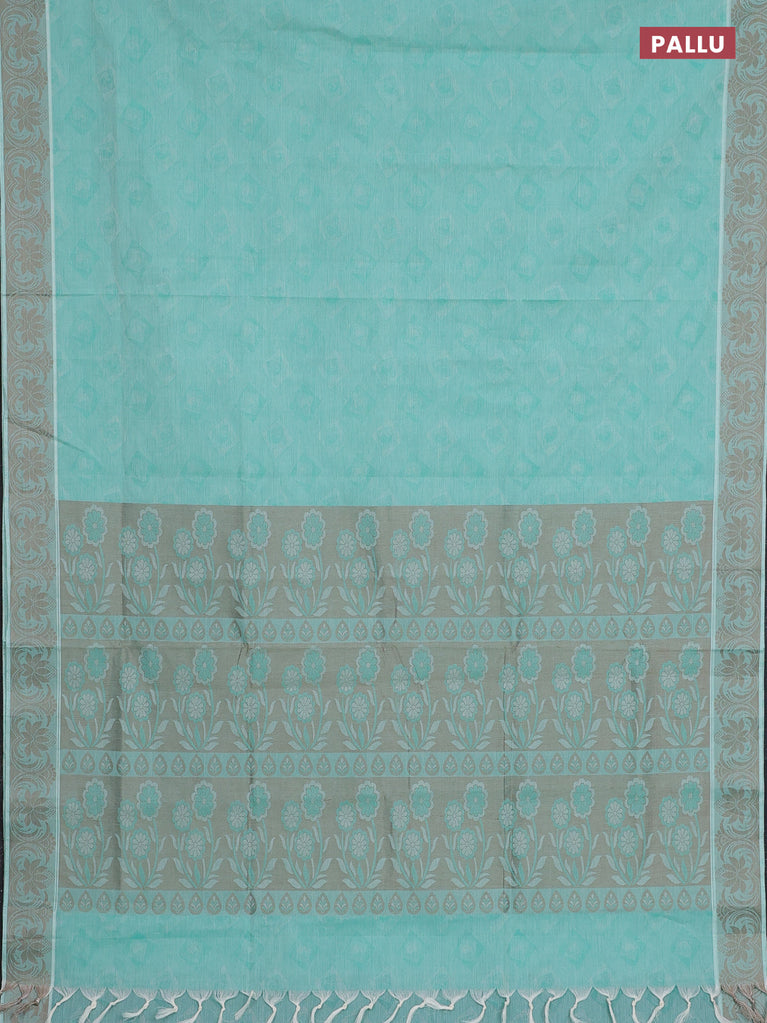 Coimbatore cotton saree mild teal green and beige with allover self emboss and thread woven border