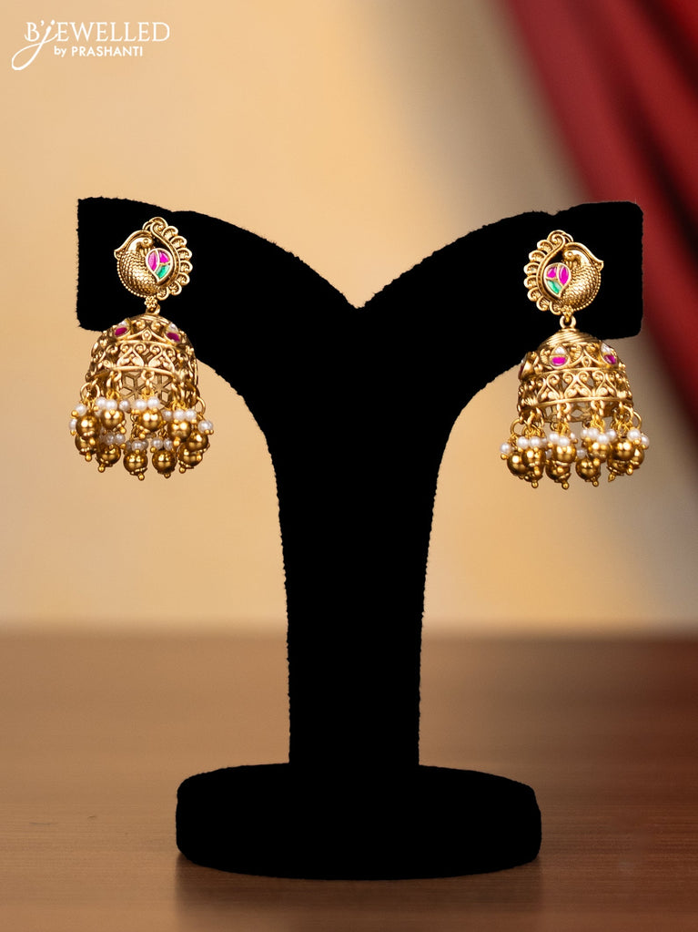 Jadau haram peacock design with jadau kundan stones and gold beads & pearl hangings