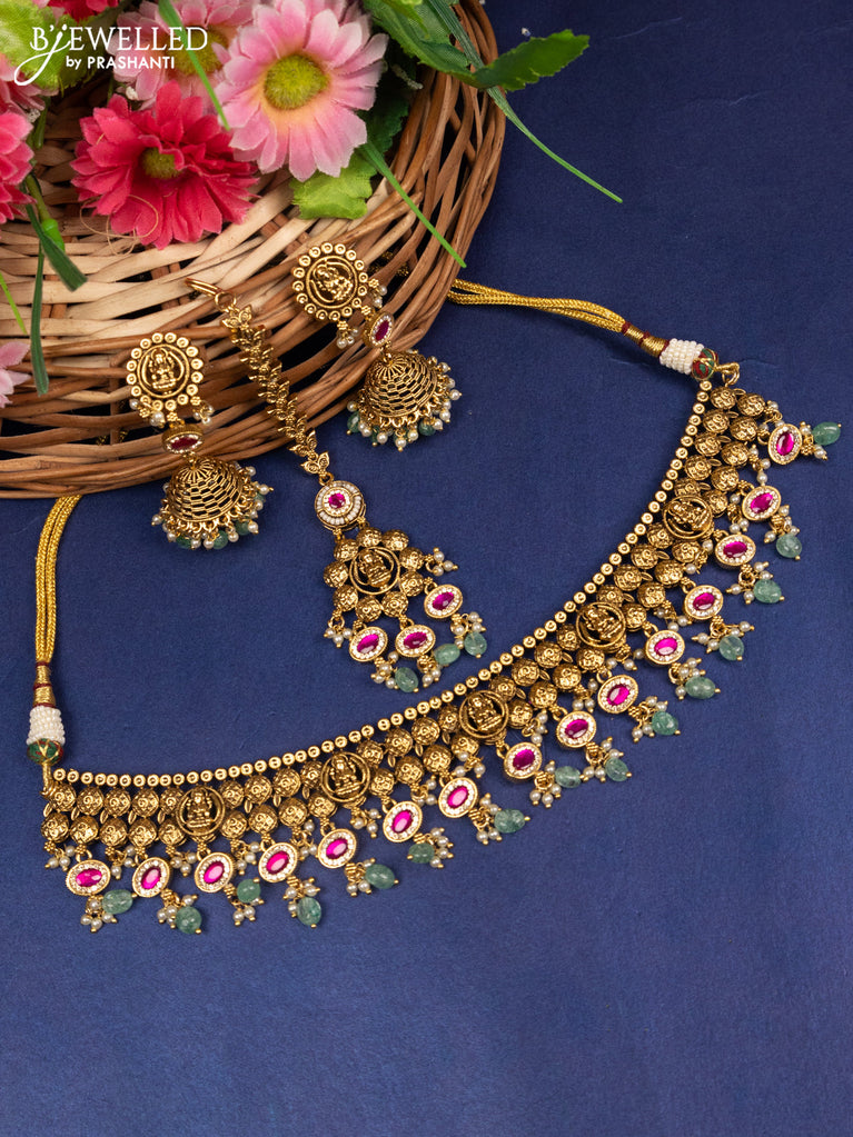 Jadau necklace lakshmi design with jadau pink kundan stones