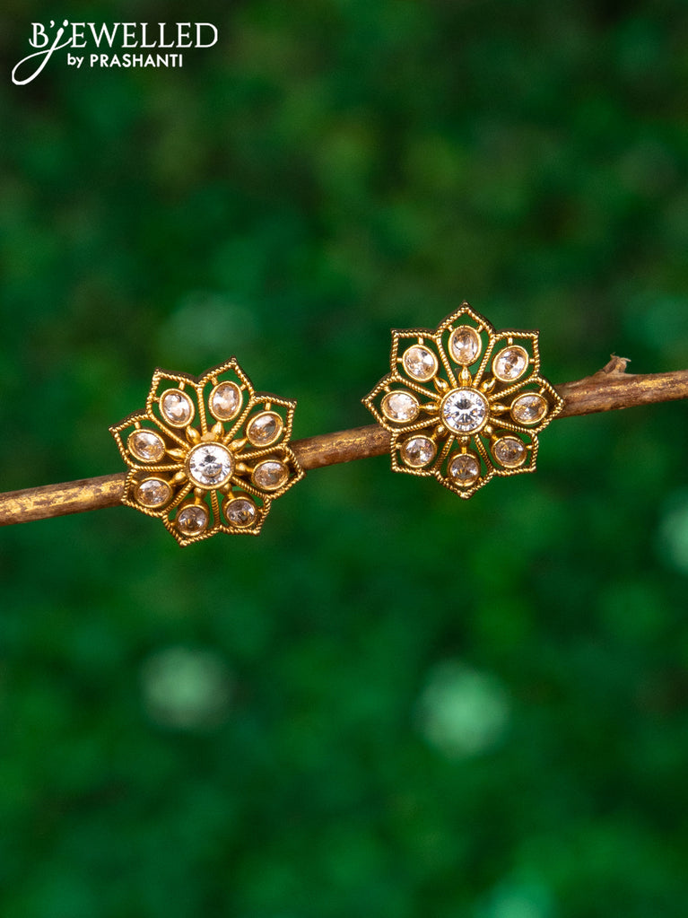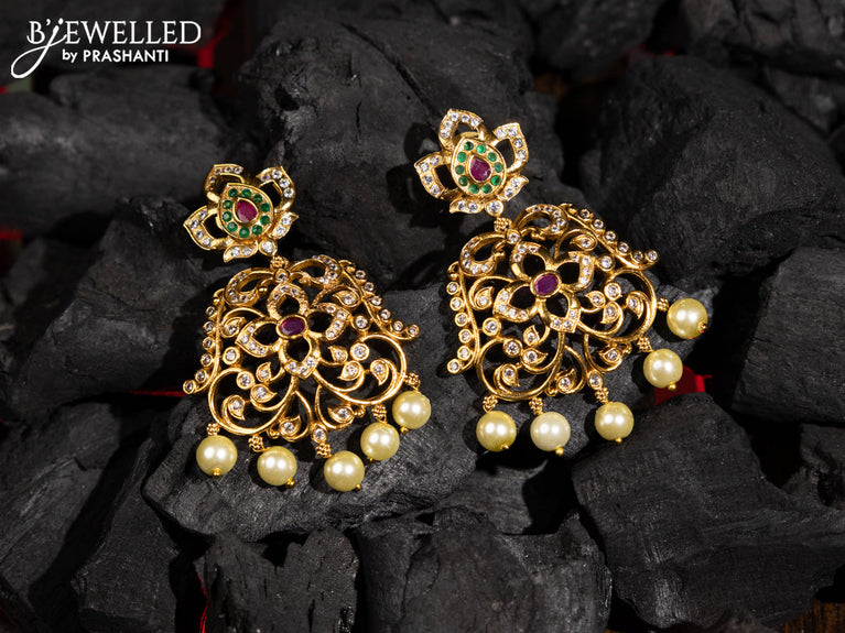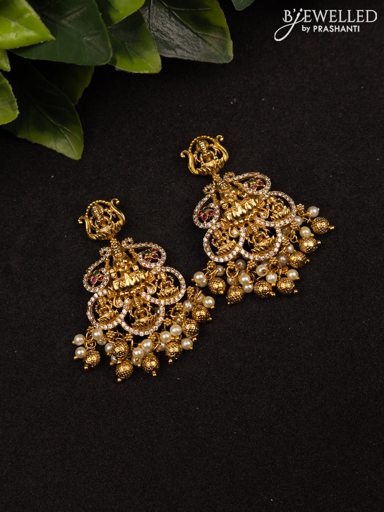 Antique earrings lakshmi design with kemp & cz stones and pearl hangings