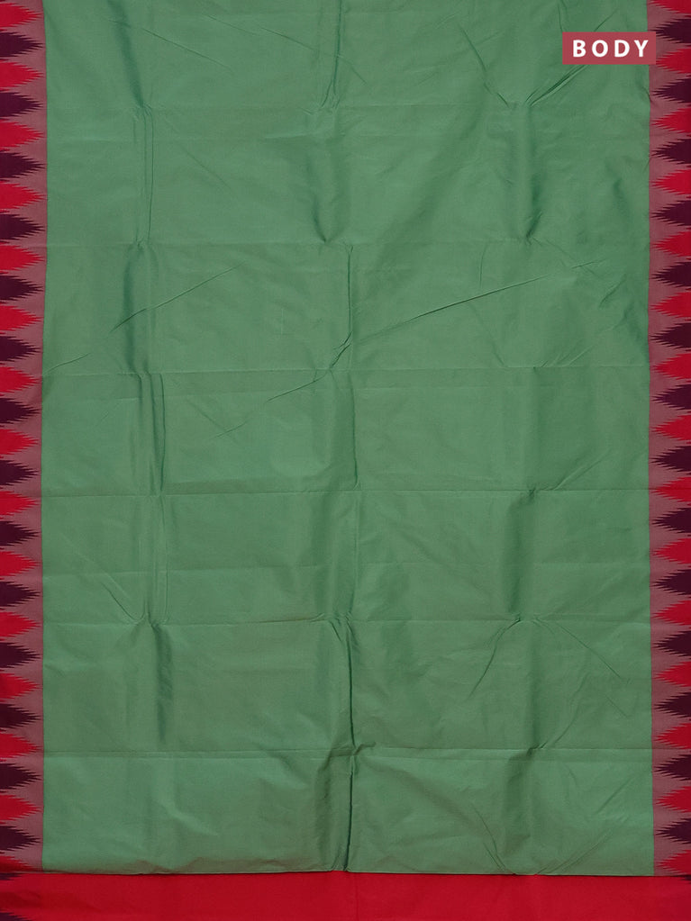 Arani semi silk saree green shade and dual shade of pink with plain body and temple design border