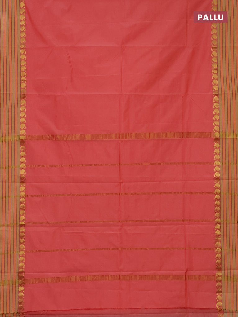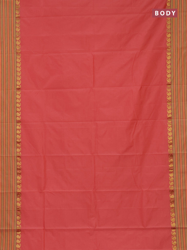 Arani semi silk saree peach pink and green with zari woven buttas and zari woven butta border