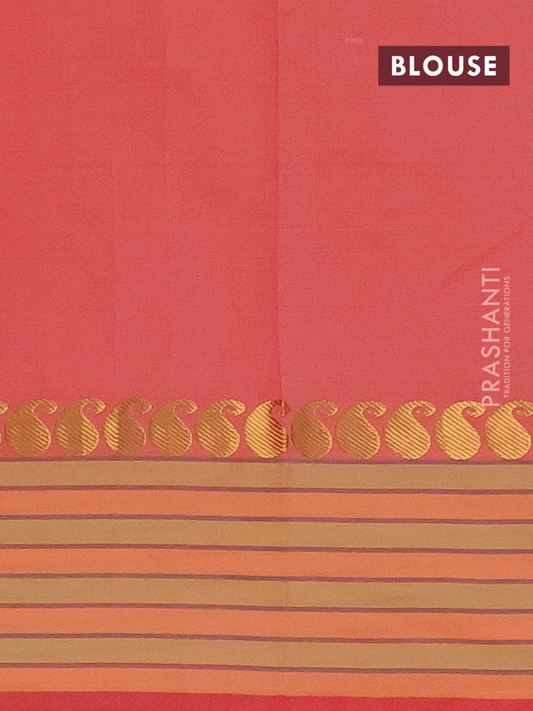 Arani semi silk saree peach pink and violet with allover copper zari weaves and zari woven border