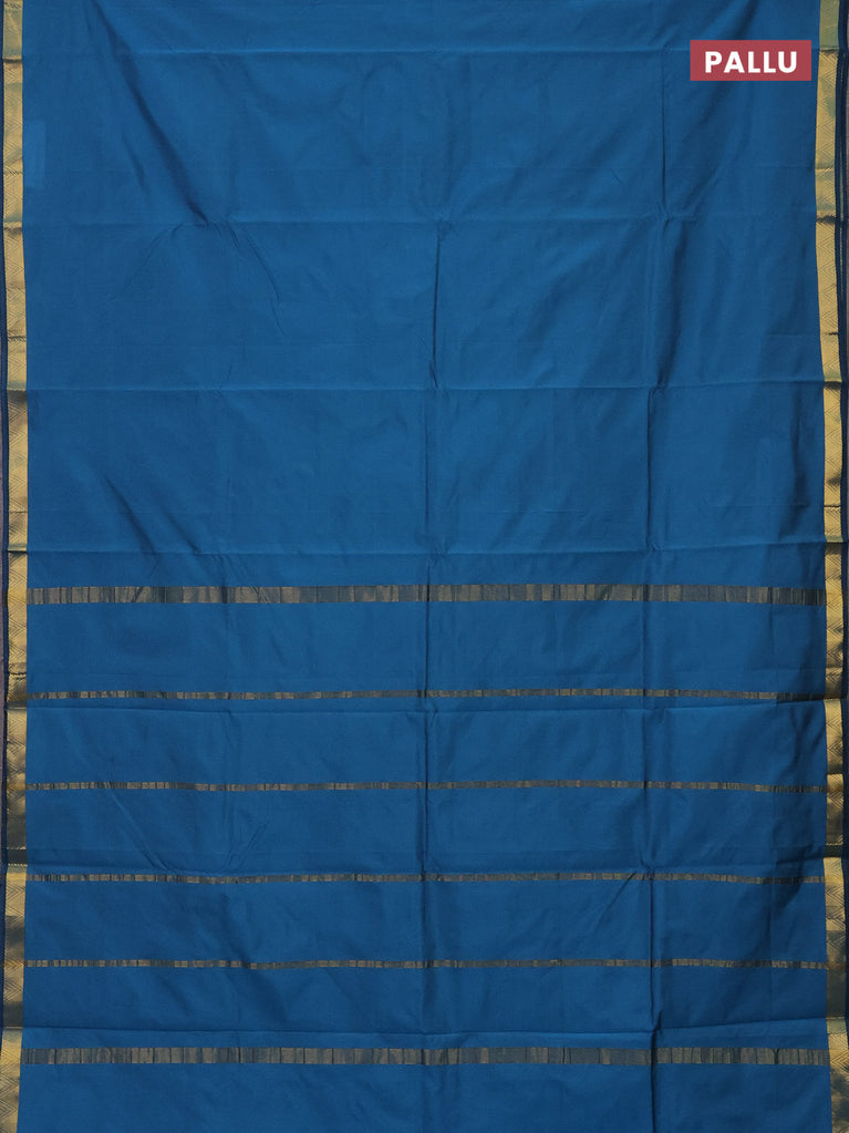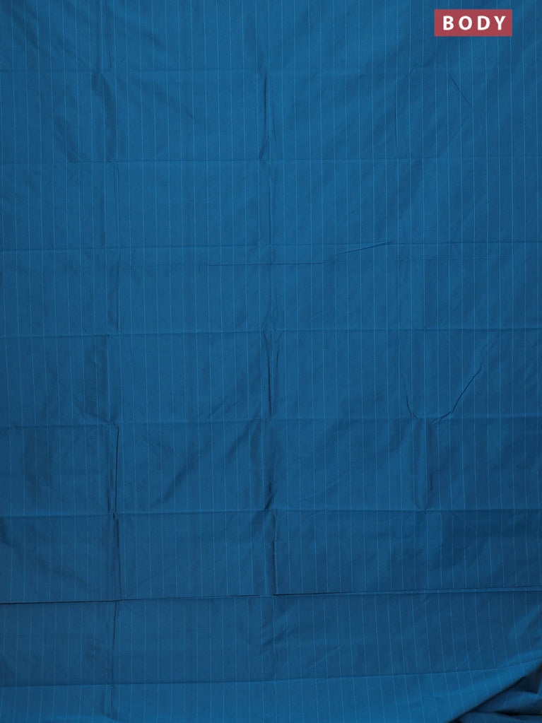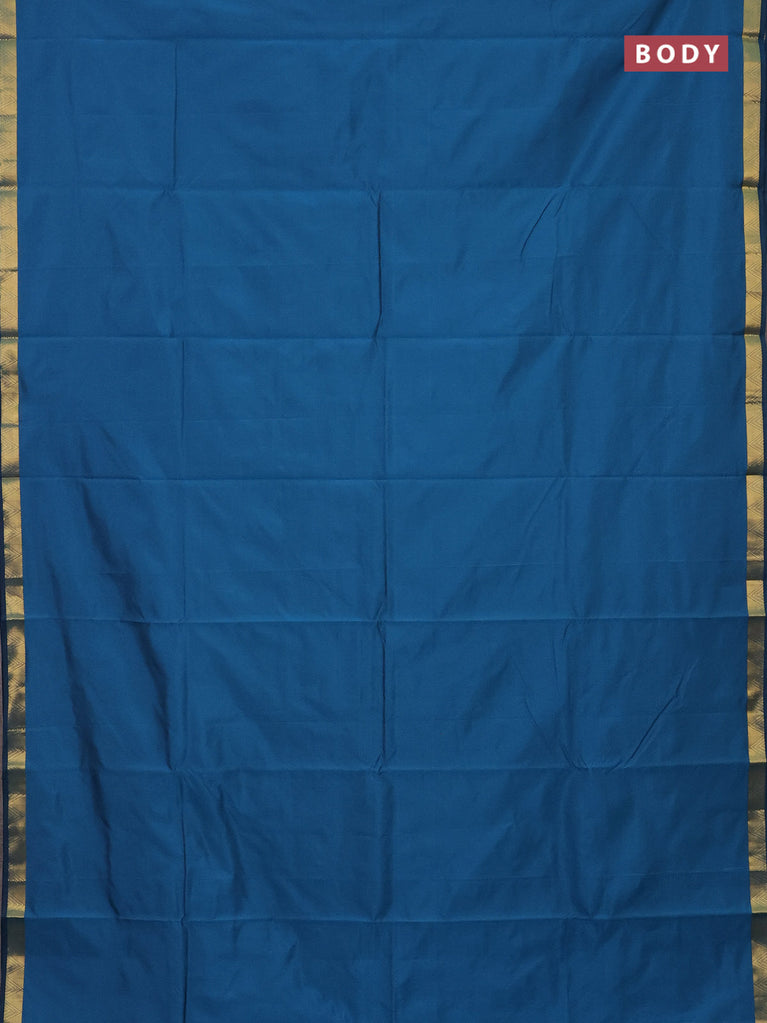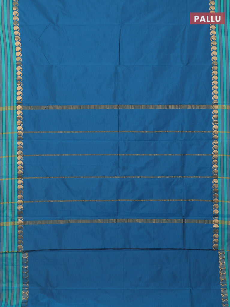 Arani semi silk saree peacock blue with plain body and small zari woven border