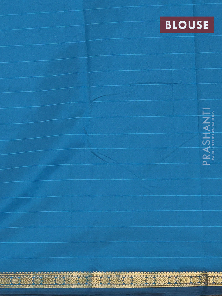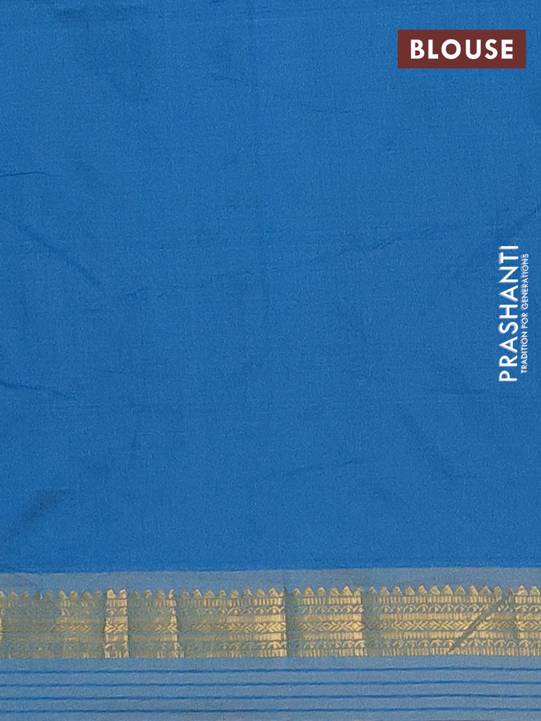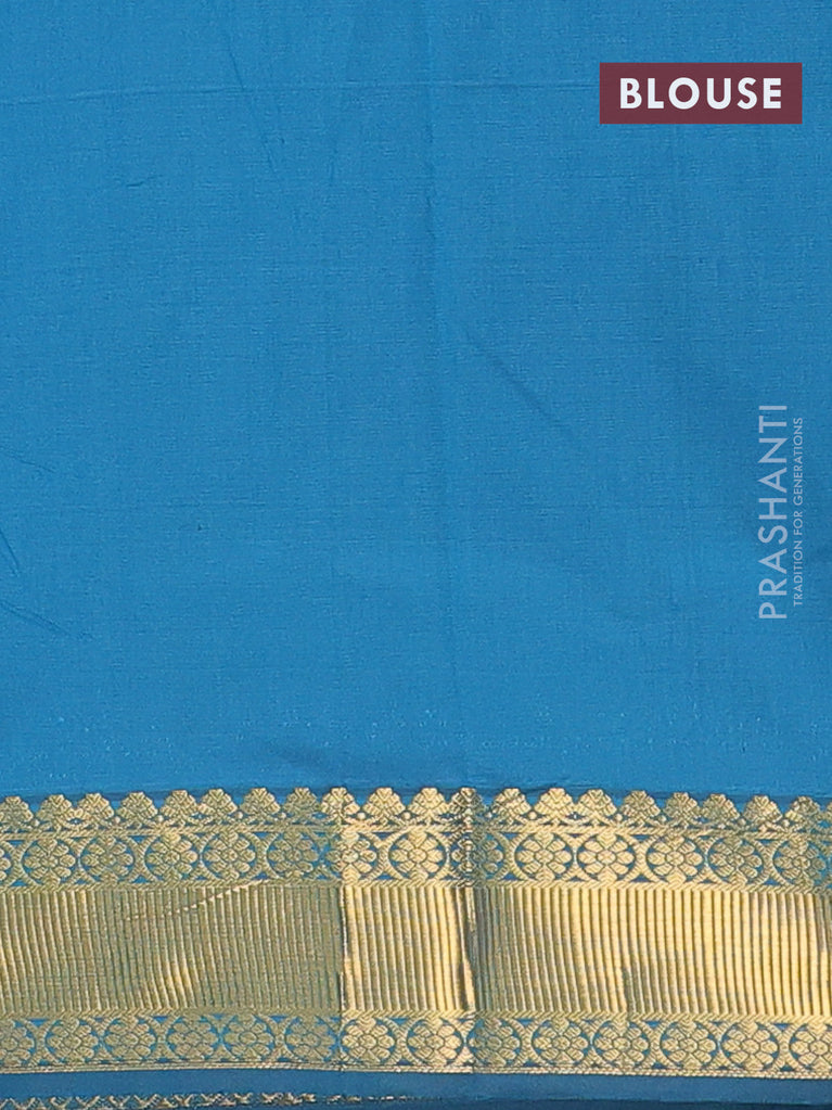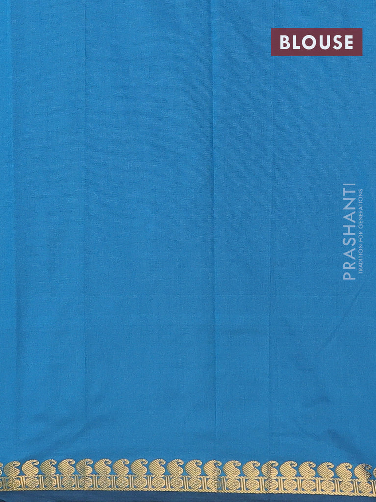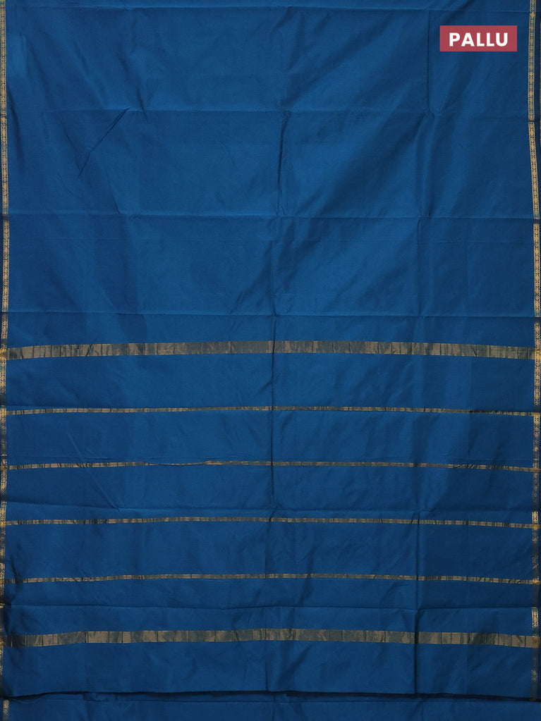Arani semi silk saree peacock blue with plain body and small zari woven border