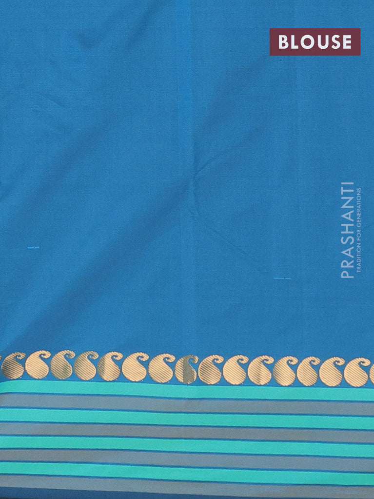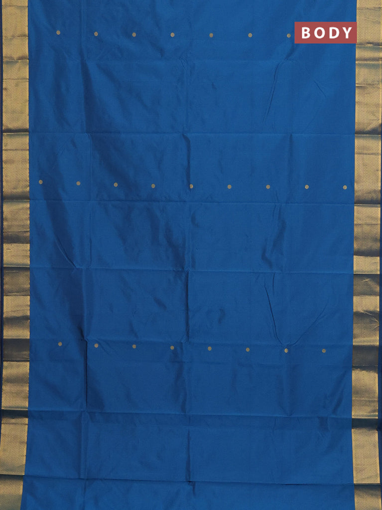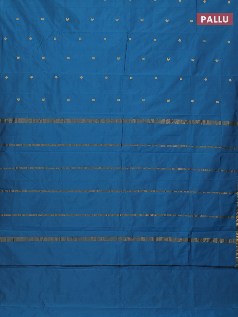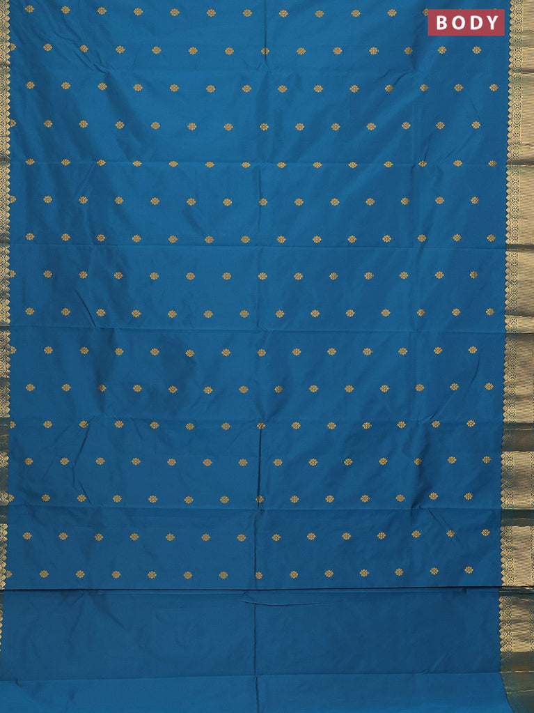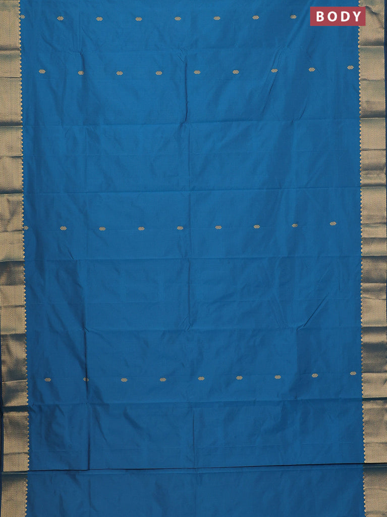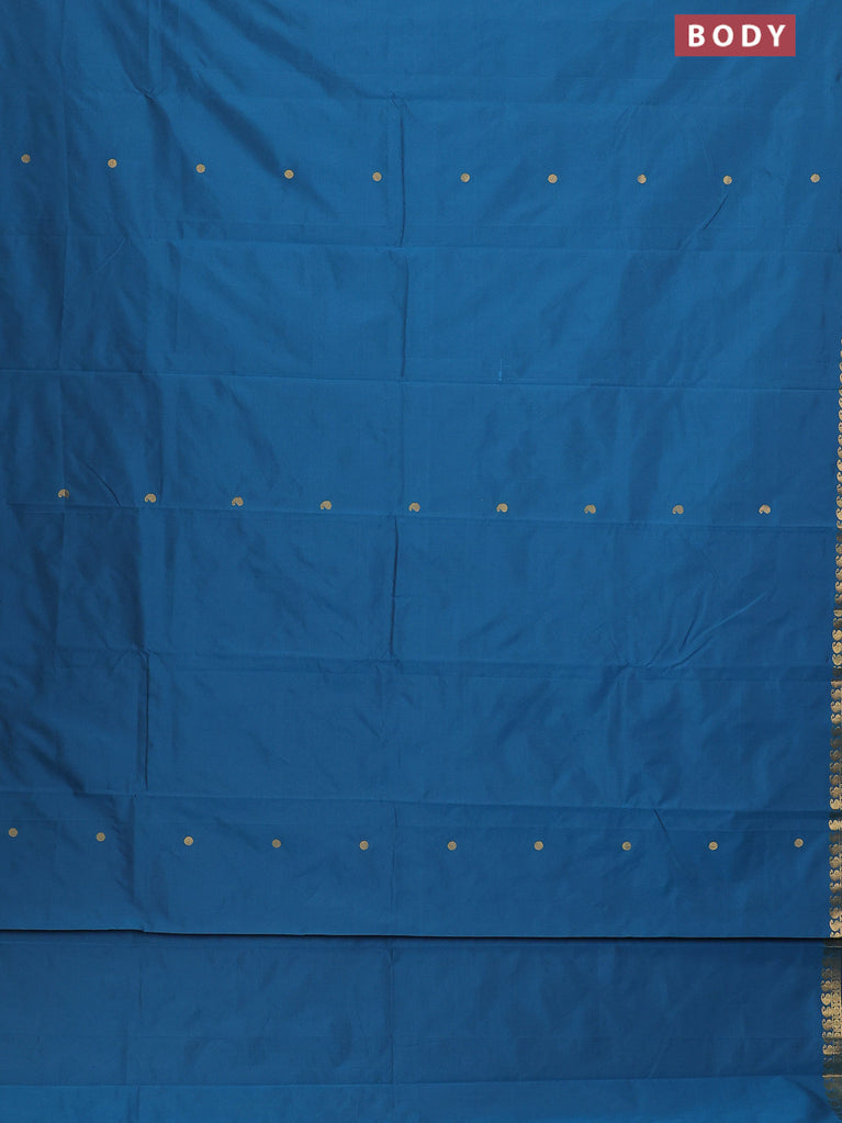 Arani semi silk saree peacock blue with rudhraksha & paisley zari woven buttas and zari woven border