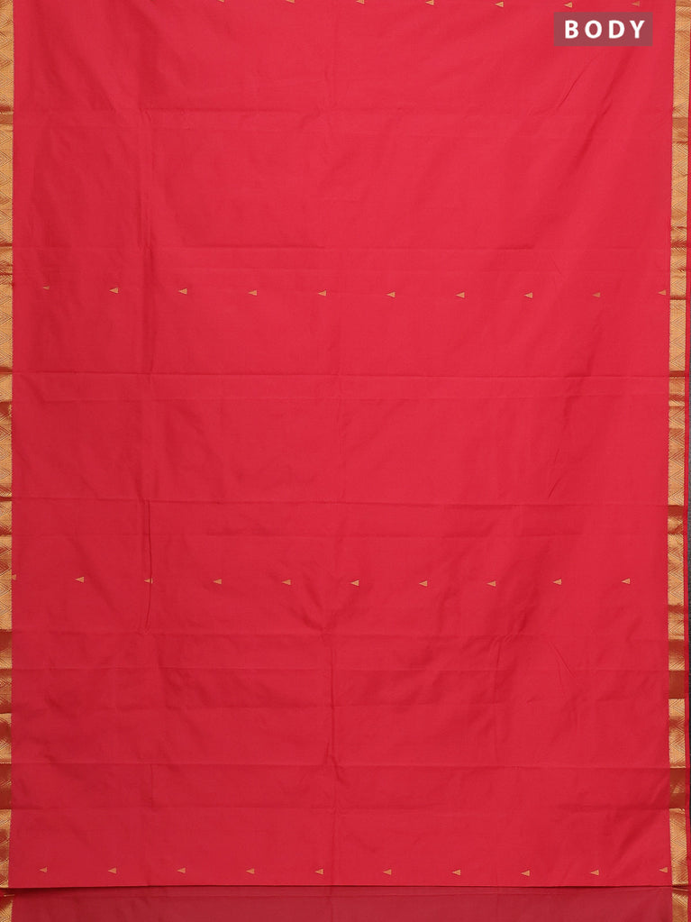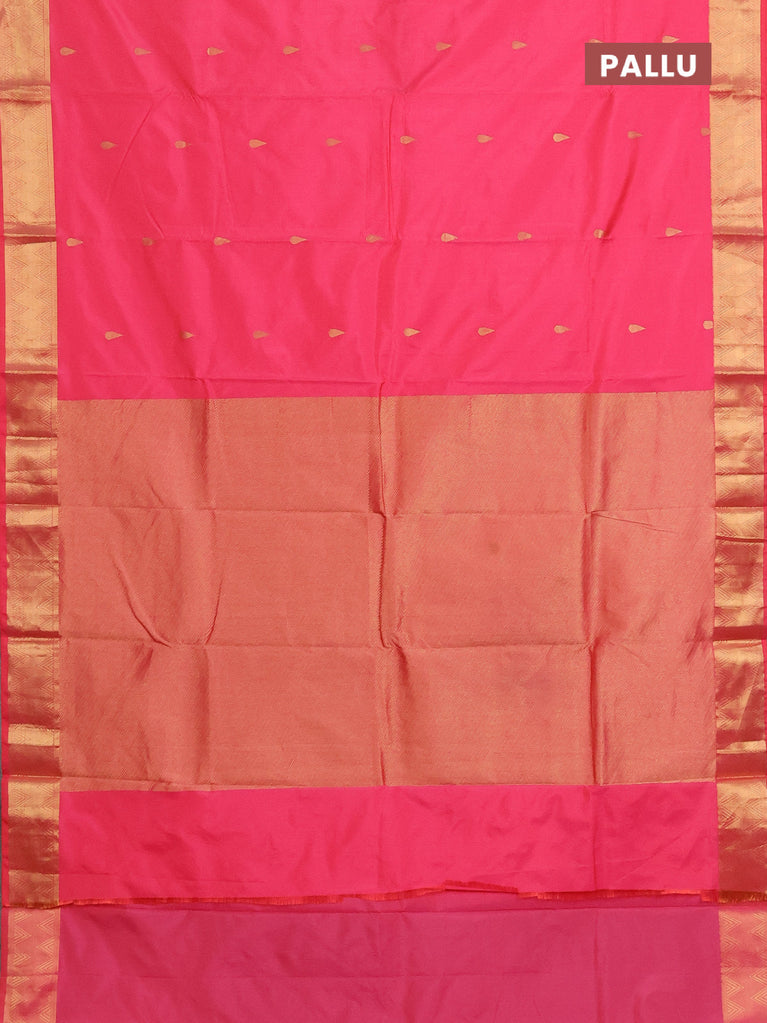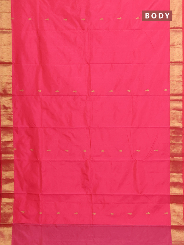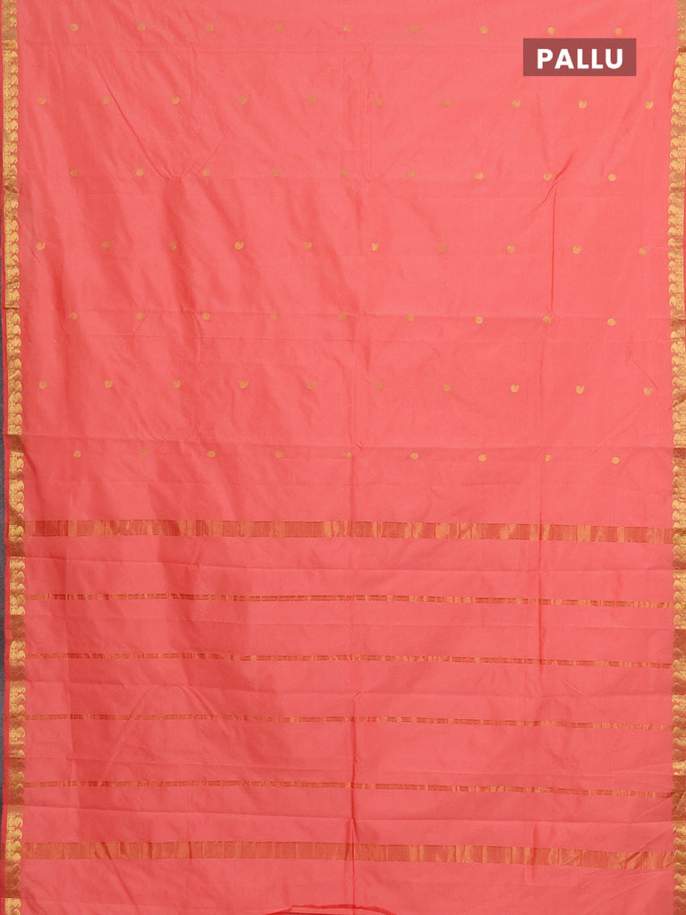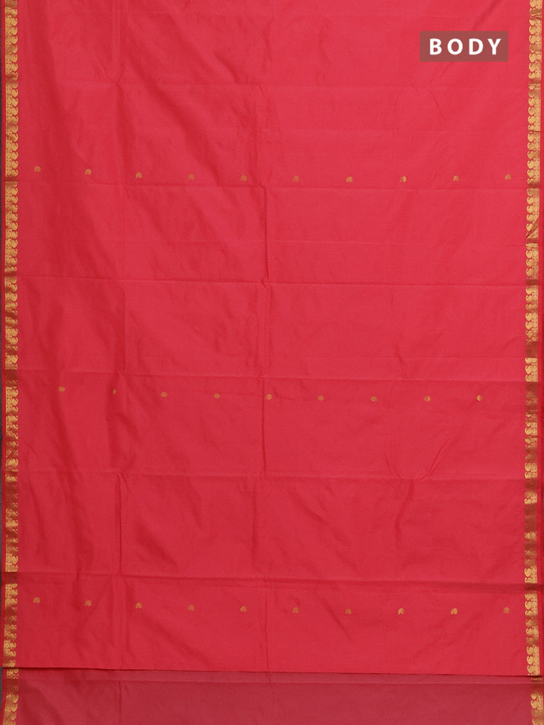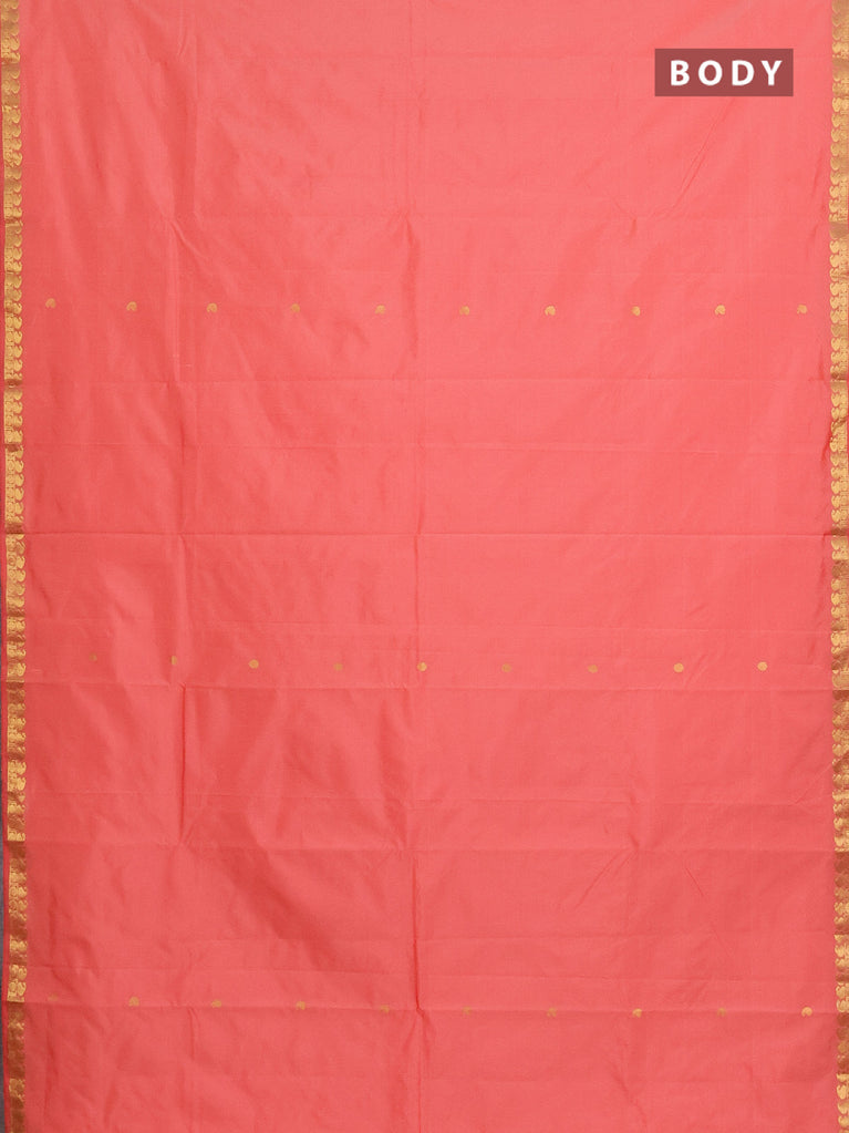 Arani semi silk saree peach pink with zari woven thilak buttas and zari woven border