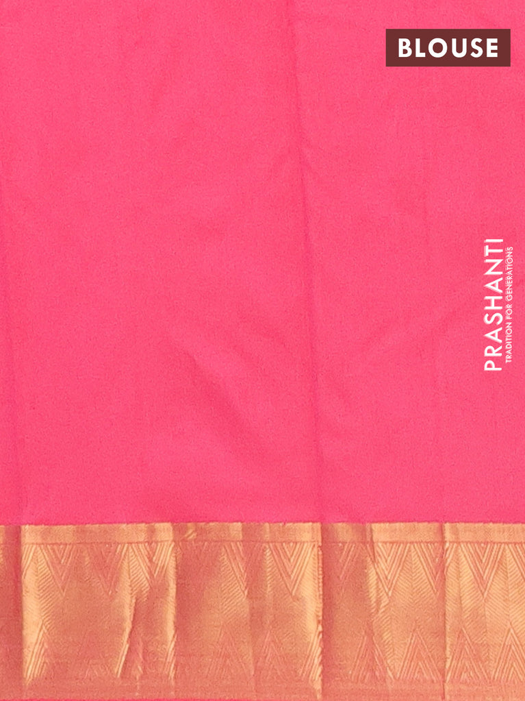 Arani semi silk saree peacock blue and magenta pink with allover copper zari checked pattern and copper zari woven simple border