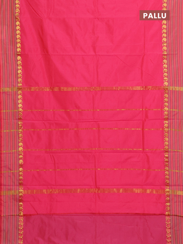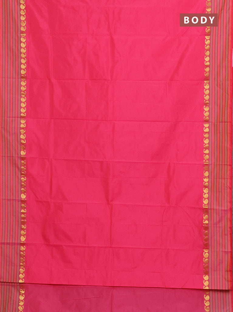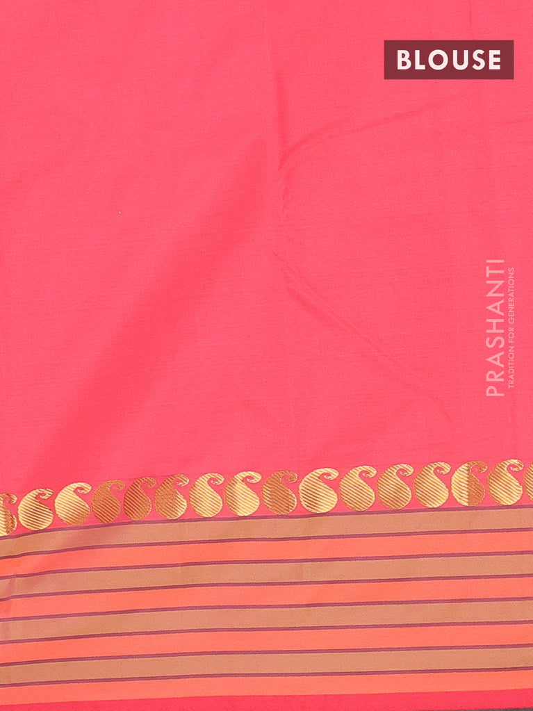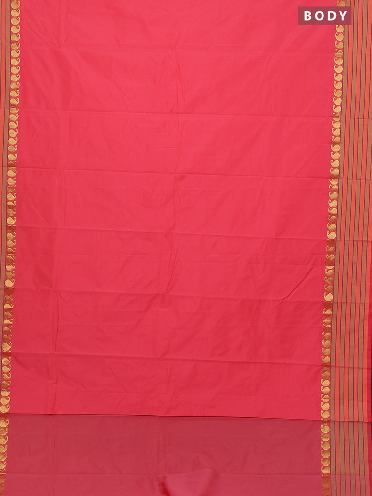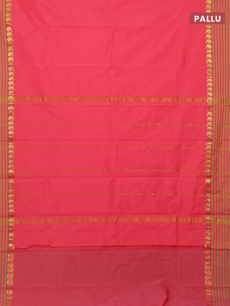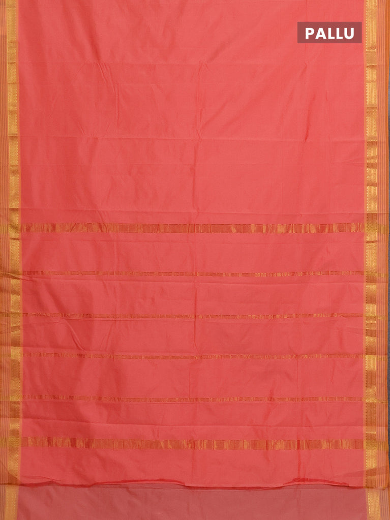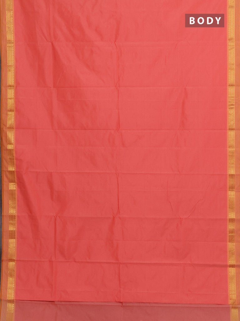 Arani semi silk saree peach pink with plain body and paisley zari woven simple border